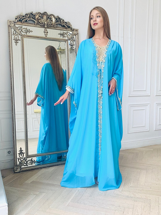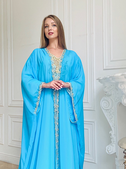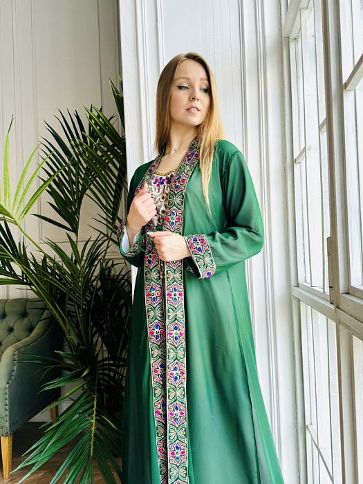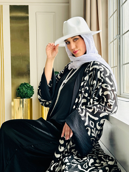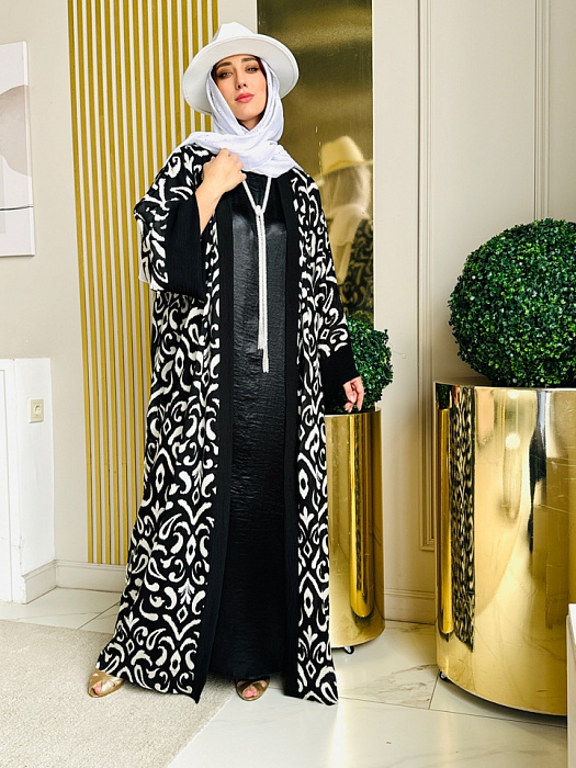 Абая, выполненная из 100% тенселя, словно ласкает кожу своей мягкостью и нежностью. Ориентальный эксклюзивный принт придают шарма и притягательности модели. Эта экологически чистая ткань, известная своими дышащими свойствами, обеспечит вам комфорт в любую погоду. Свободный крой абайи позволяет двигаться легко и грациозно, подчеркивая вашу женственность и изящество.