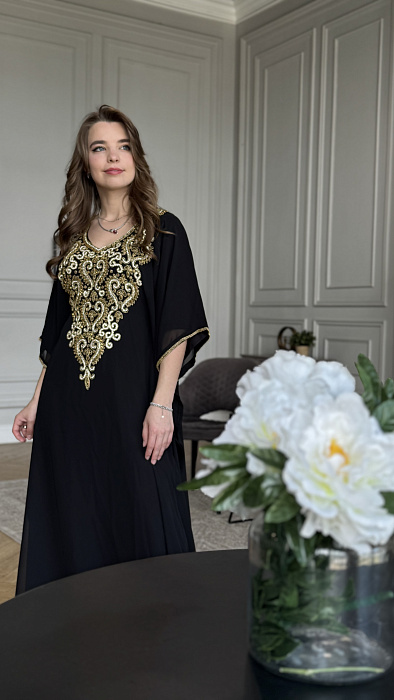 В комплект входит базовое платье с рукавом три четверти, длина макси.