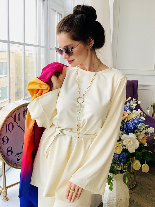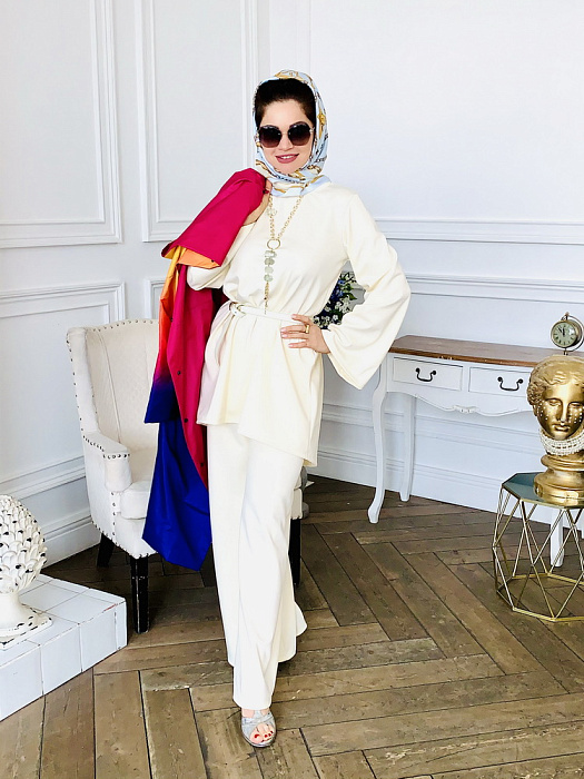 Костюм-двойка – это воплощенная мечта о комфорте и элегантности, где мягкость ткани ромэ встречается с дерзким огнем насыщенного красного цвета. Он создан для женщины, уверенной в себе, не боящейся выделяться из толпы и ценящей роскошь в деталях.