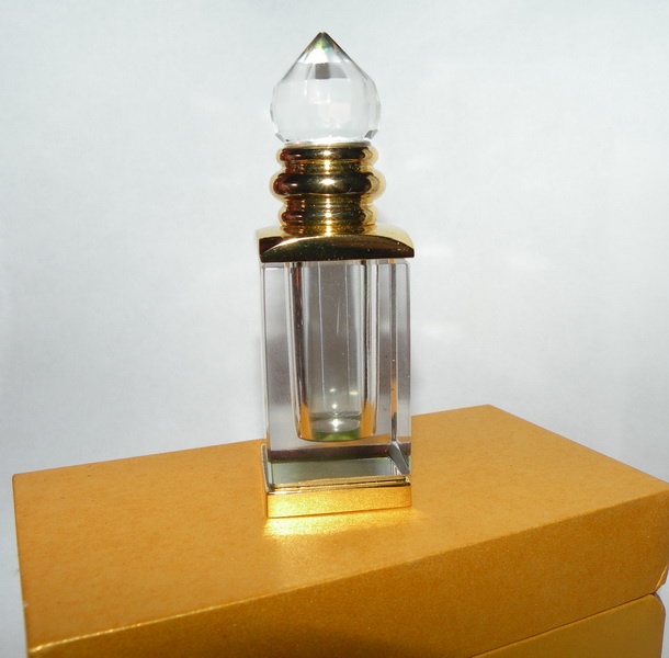 Роскошный хрустальный флакон с цветными гранями. В коробке. Производство ОАЭ. Объем 6мл.