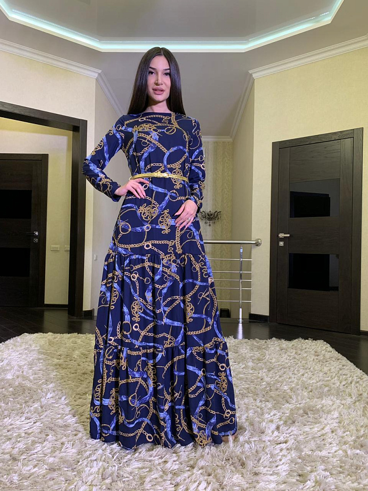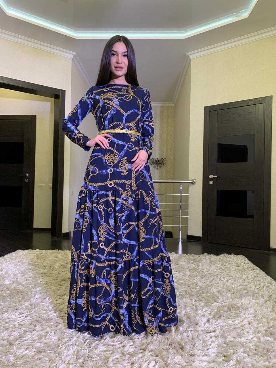 Роскошное платье с красивым принтом. Размер 44-46. Ткань - креп. Прилагается пояс.