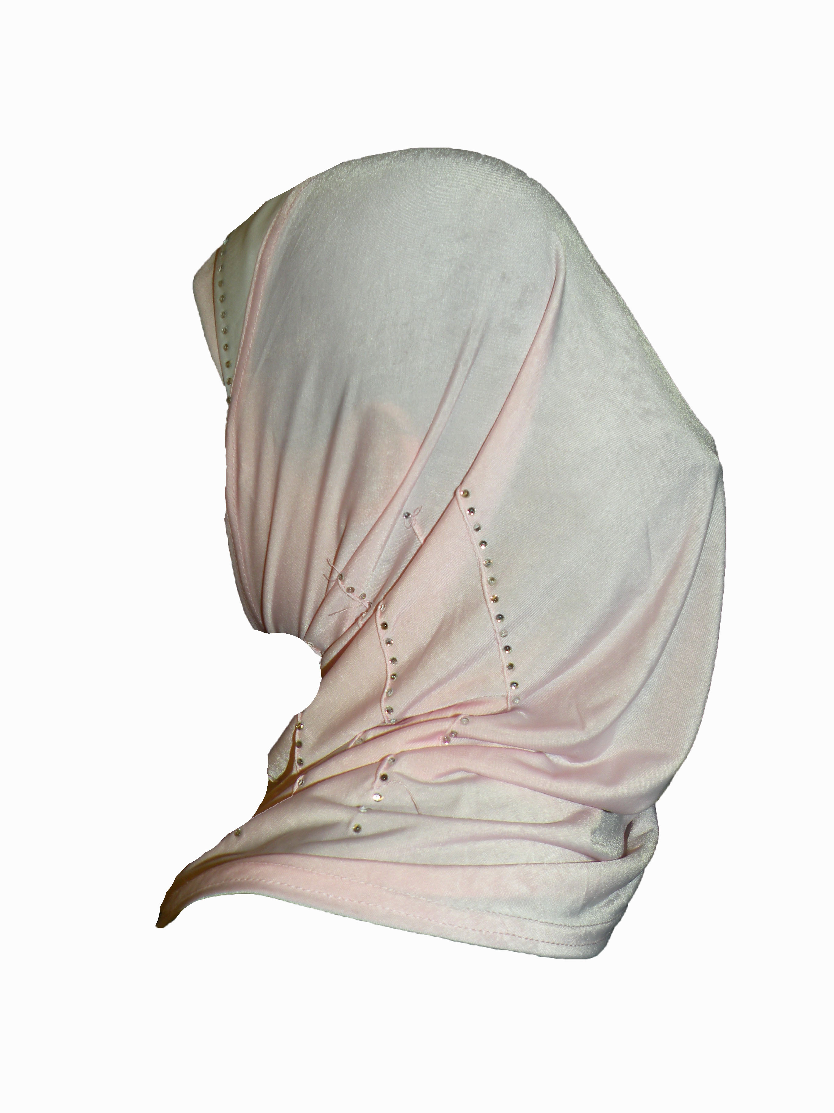 Капор из стрейч ткани со стразами. Цвет: розовый с белым.