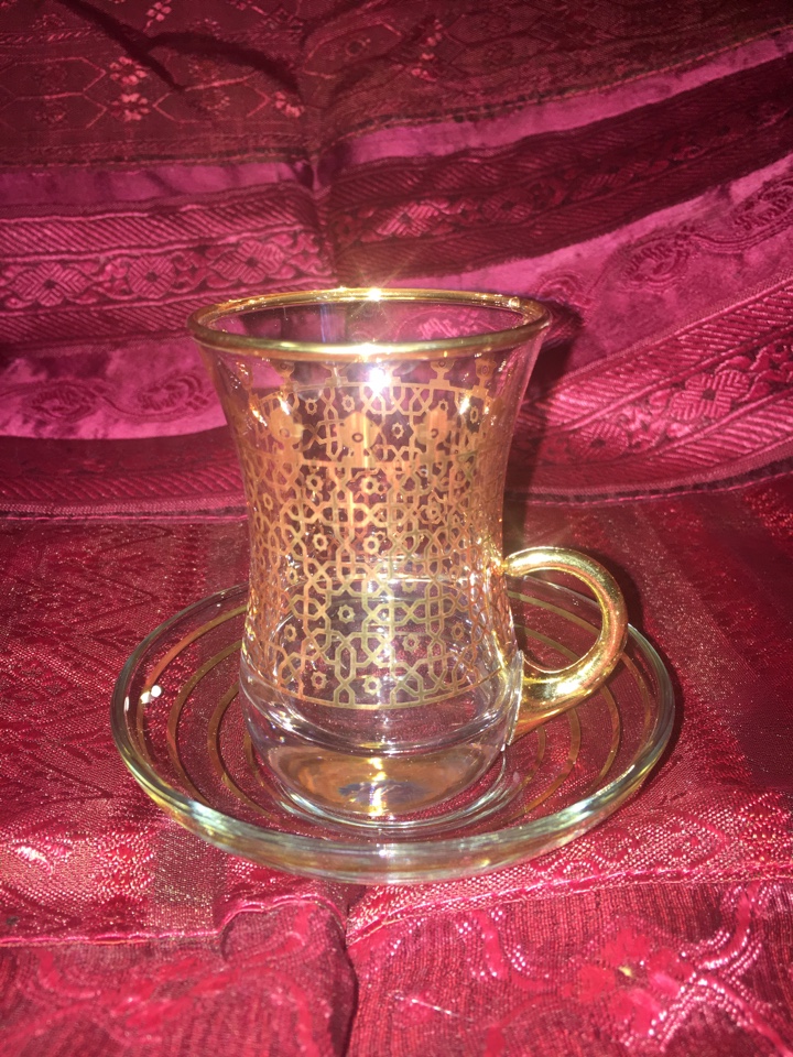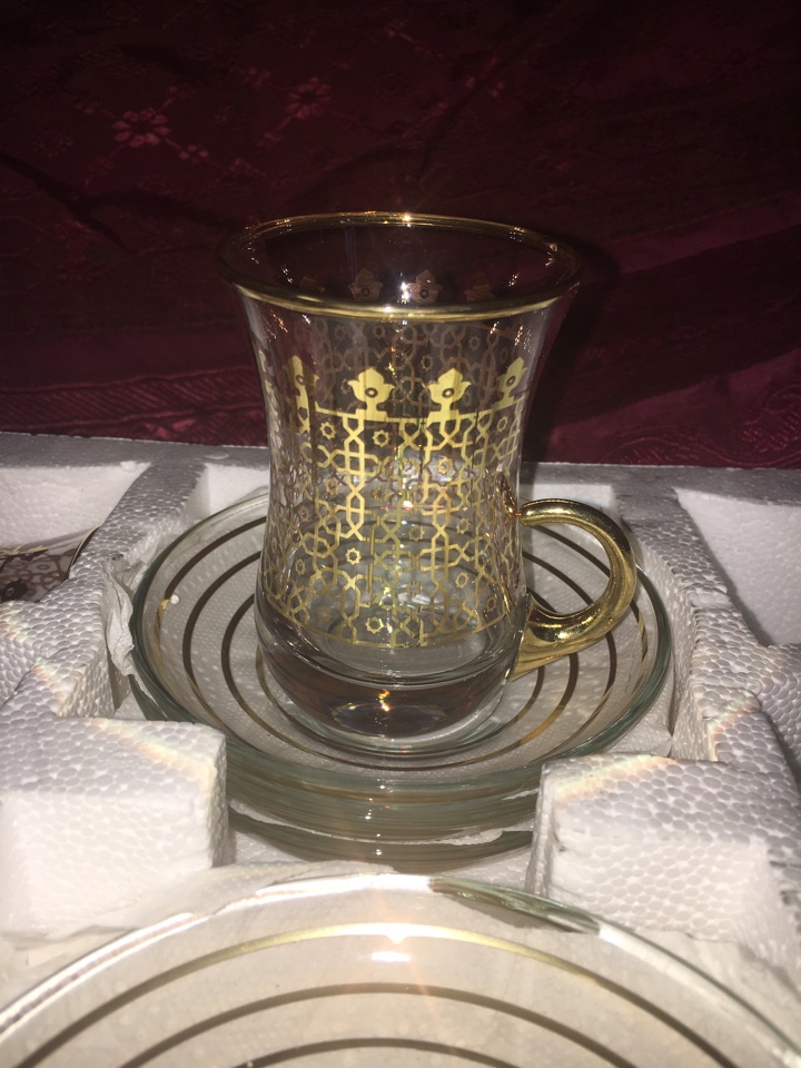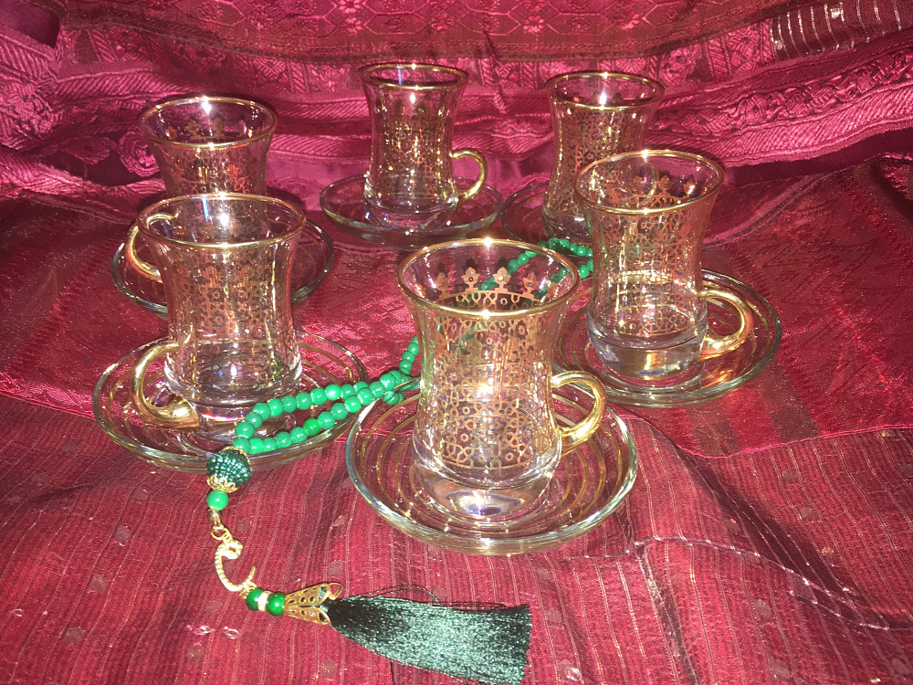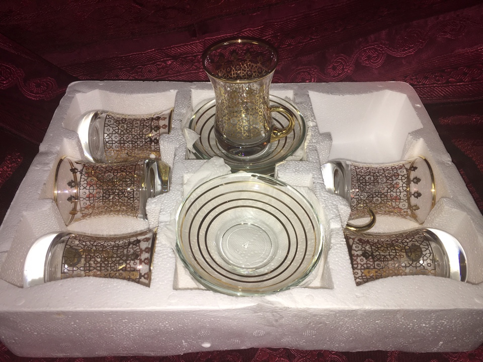 Набор для чая на шесть персон. Стеклянные чашки выполнены в турецком стиле, с блюдцами. Расписаны красивым восточным рисунком. Производство Турция.