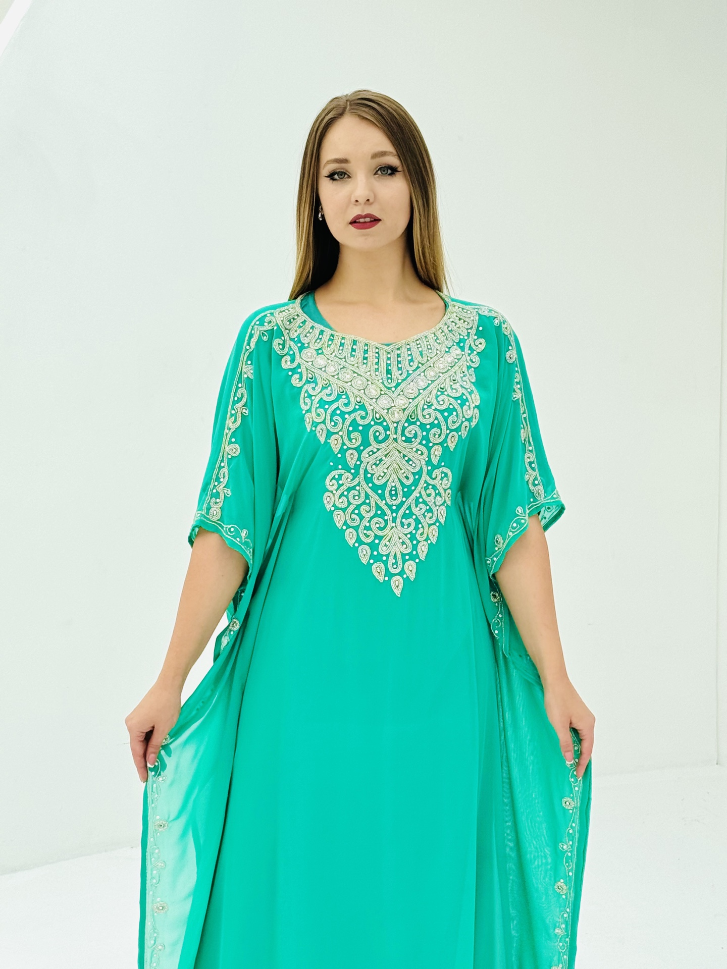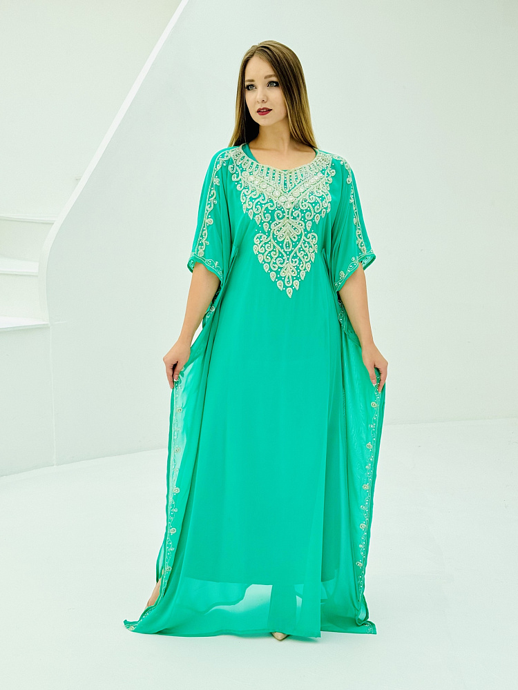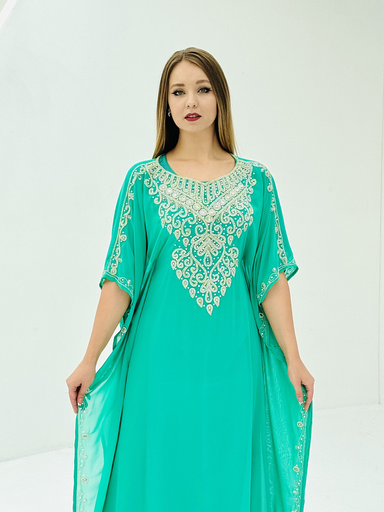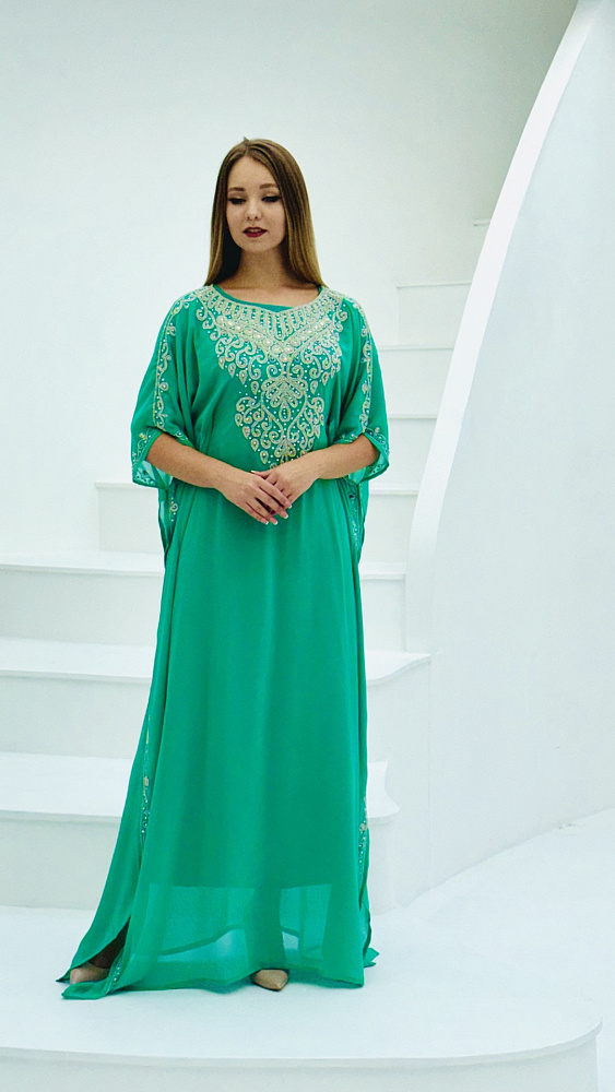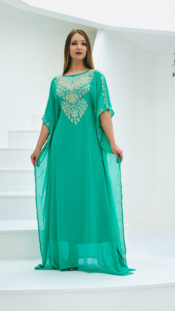 Праздничная роскошная абая, состоящая из базового платья, регулируемого на завязках и абаи. Деккорирована ручной вышивкой. Подойдет на размер 46-52.ПРоизводство ОАЭ