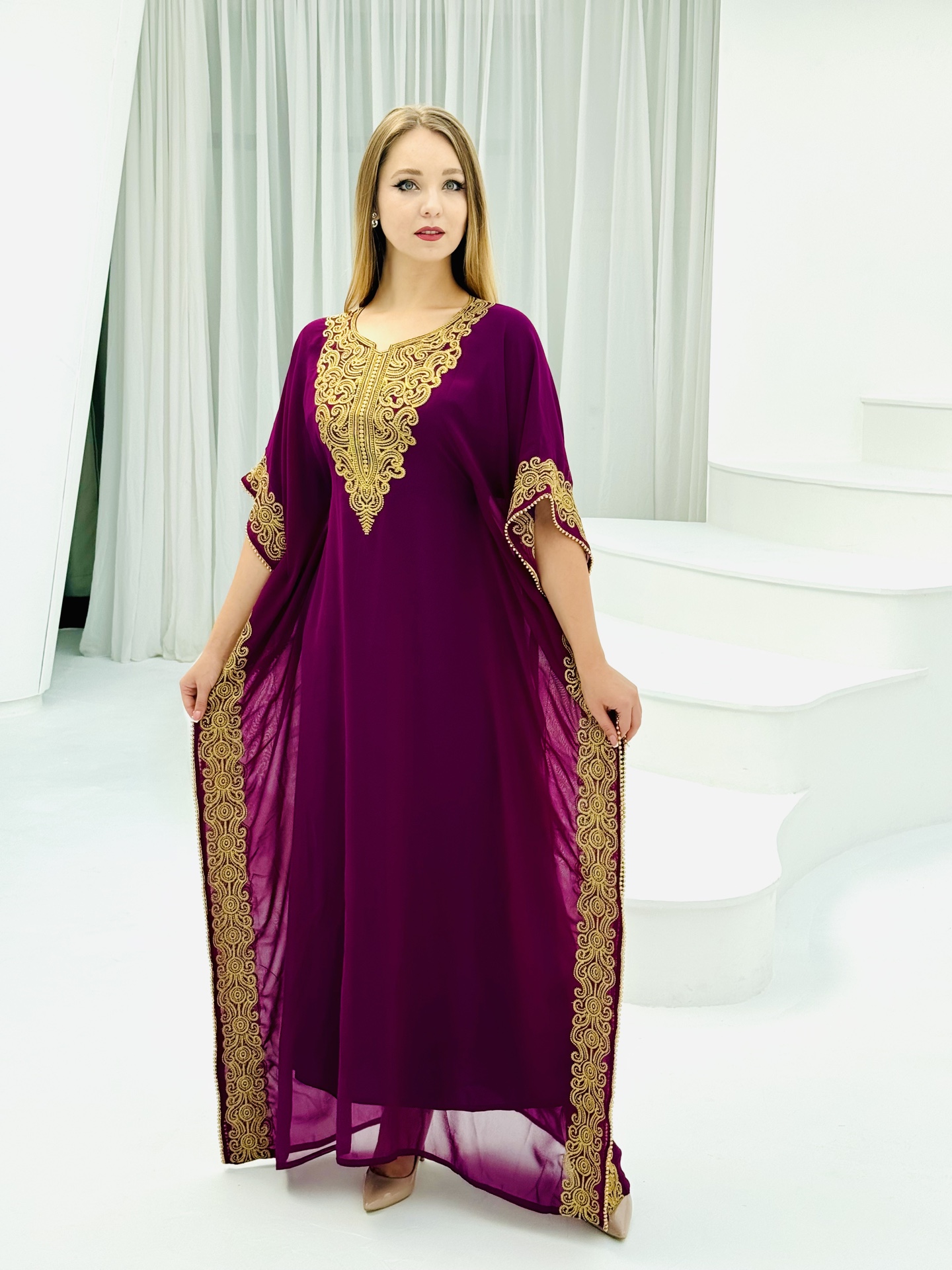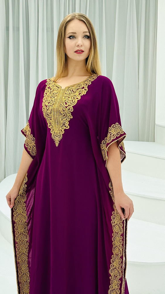 Праздничная роскошная абая, состоящая из базового платья, регулируемого на завязках и абаи. Декорирована ручной вышивкой. Подойдет на размер 46-52.Производство ОАЭ