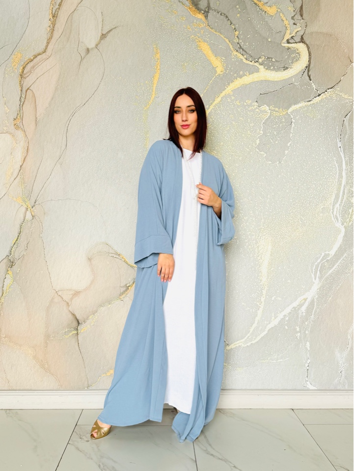 Красивая абая двойка из ткани манго. Размер единый от 46 до 54. Можно приобрести одну абаю верхнюю, она по размер до 56 точно. Базовое платье с коротким рукавом.