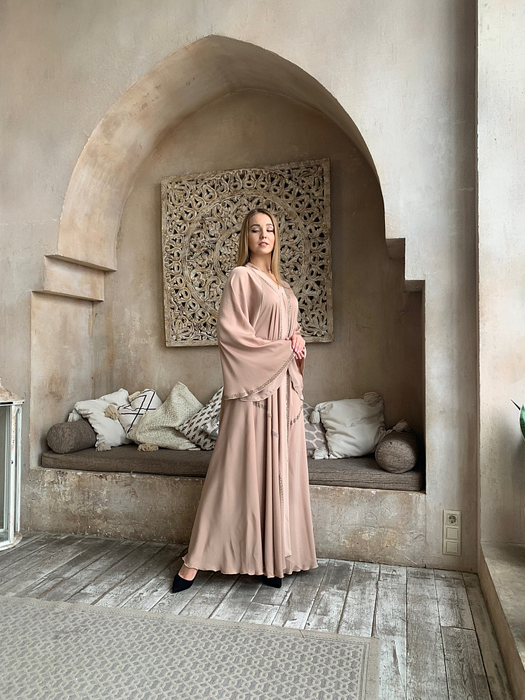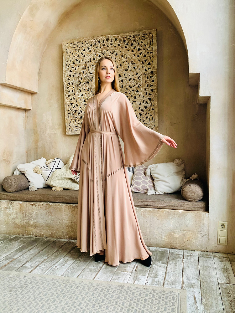 Роскошная абая изысканного дизайна . Размер от 44 до 50. Прилагается пояс и палантин . Производство ОАЭ