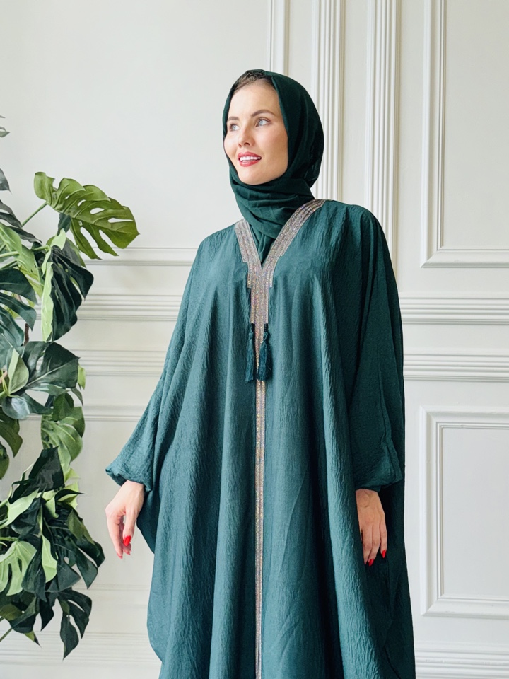Абая Эллана, изготовлена из премиальной ткани купра люкс. Декорирована стразами. Размер подойдет от 44-54р. Палантин в комплекте. Производство ОАЭ