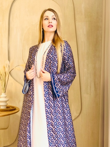 Стильная абая накидка из французского шелка с красивым принтом под бренд. Размер 42-44-46-48