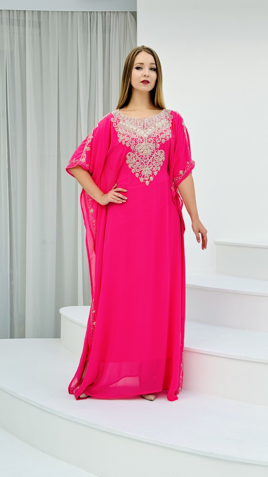 Благодаря универсальному размеру 46-52, абая отлично сядет на разные типы фигур, подчеркивая достоинства и деликатно скрывая недостатки. Регулируемые завязки позволяют создать идеальную посадку, обеспечивая комфорт и свободу движений. Высокое качество материалов и безупречное исполнение гарантируют долговечность изделия и сохранение его первозданного вида на долгие годы.