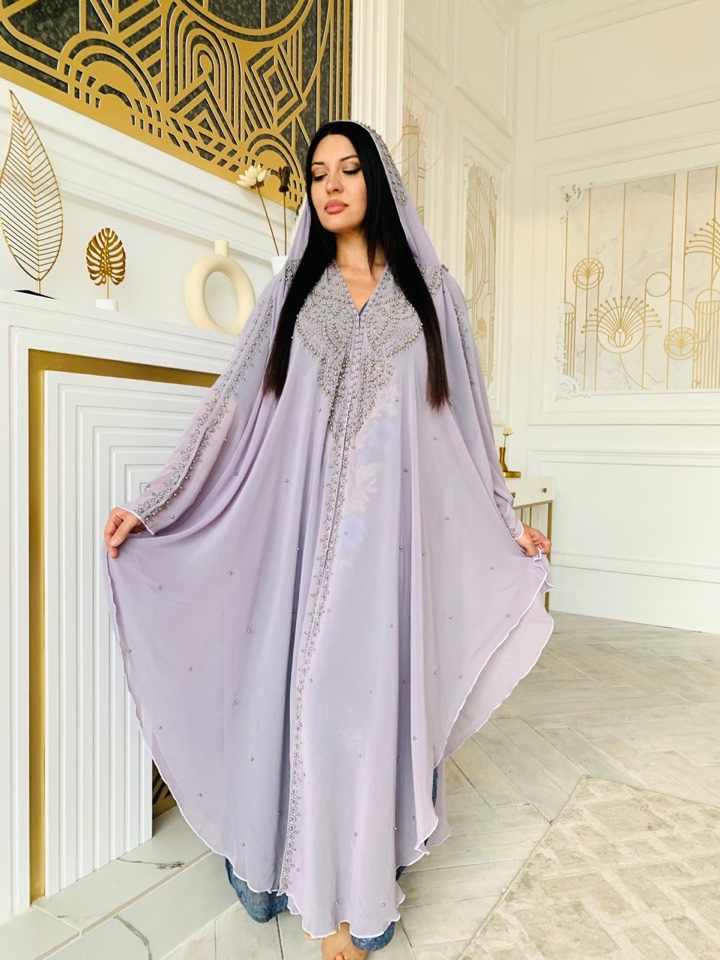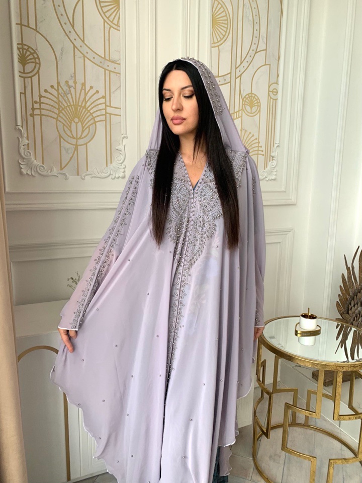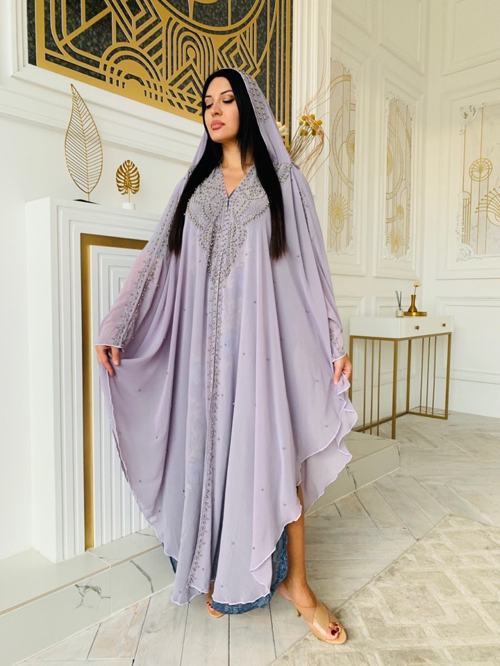 Абая накидка выполнена как летучая мыть, с вшитым палантином. Абая украшена стразами. Размер оверсайз ,от 44-60 размера подойдет. Производство ОАЭ