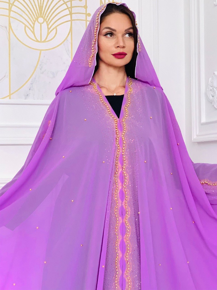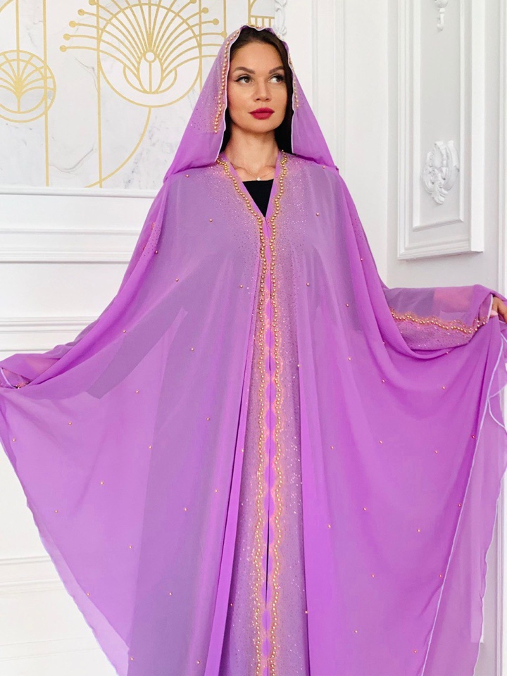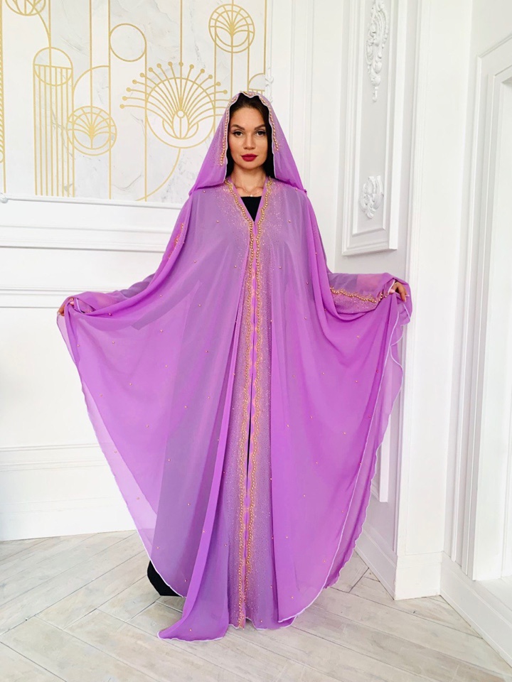 Абая накидка выполнена как летучая мыть, с вшитым палантином. Абая украшена стразами. Оверсайз от 44-60 размера подойдет. Производство ОАЭ