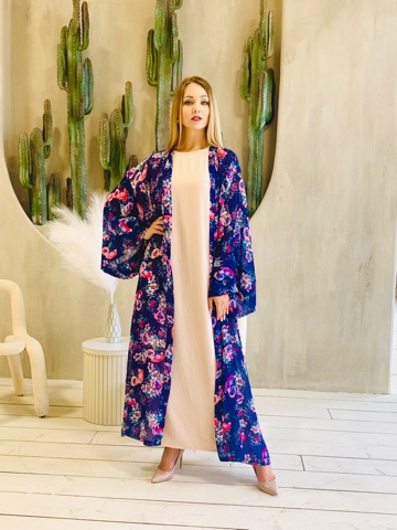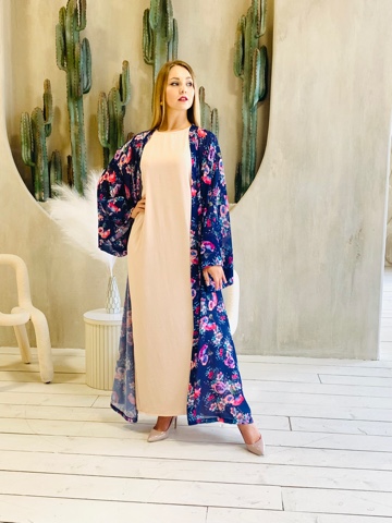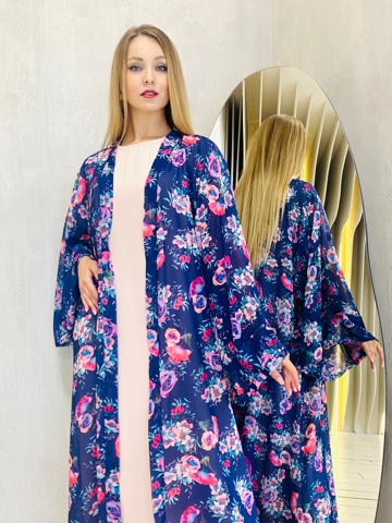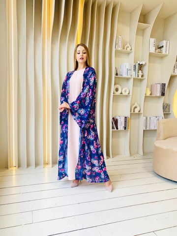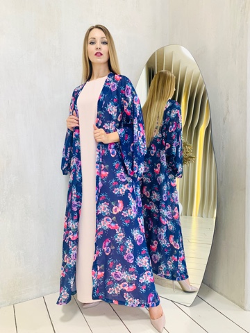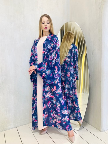 Роскошная абая с цветочным принтом. Дизайн абаи с изысканными широкими рукавами придает образу шарма. Размер от 46-56. Ткань - принтованный шифон натуральный. Нижнее базовое платье продается отдельно.