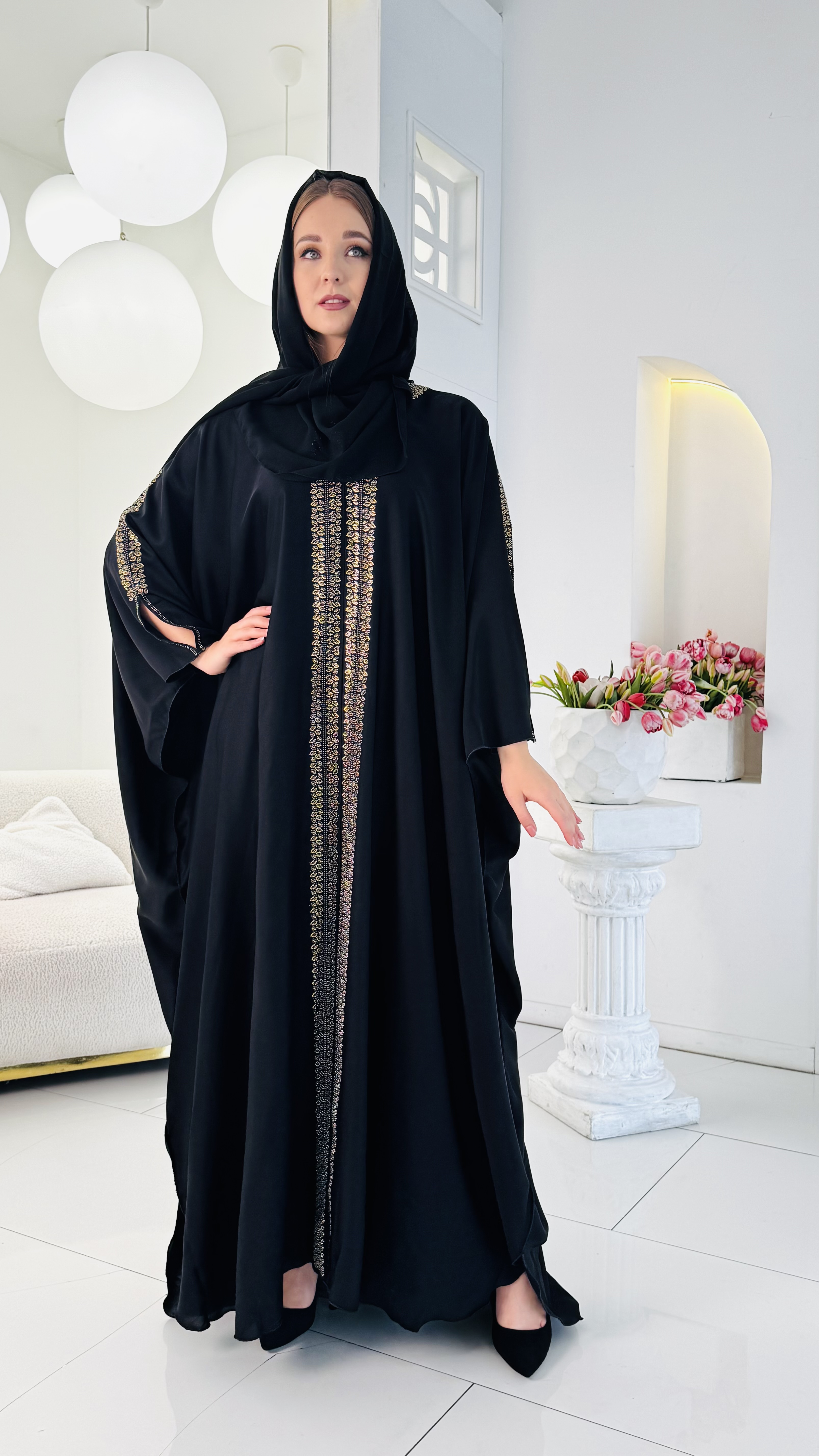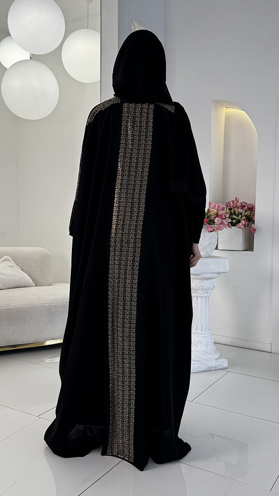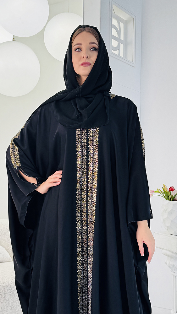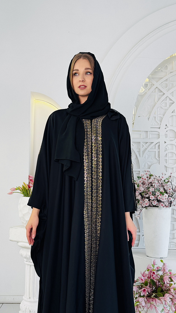 Свободный крой оверсайз (от 46 до 54 размера) обеспечивает непревзойденный комфорт и свободу движений, позволяя каждой женщине чувствовать себя уверенно и непринужденно. Лёгкая ткань, плавно ниспадая, создаёт грациозный силуэт, подчёркивая достоинства фигуры и скрывая возможные недостатки. В комплекте к абае предлагается изящный палантин, выполненный в том же стиле и цветовой гамме. Он может быть использован как для покрытия головы, так и в качестве стильного аксессуара, дополняющего образ. Палантин добавляет образу завершённость и элегантность, позволяя создавать разнообразные стильные комбинации. Эта абая станет прекрасным выбором для посещения мечети, религиозных праздников и торжественных мероприятий. Она подчеркнет вашу индивидуальность, чувство стиля и уважение к традициям. Позвольте себе окунуться в мир роскоши и изящества с этой великолепной мусульманской абаей, которая станет украшением вашего гардероба и предметом восхищения окружающих.