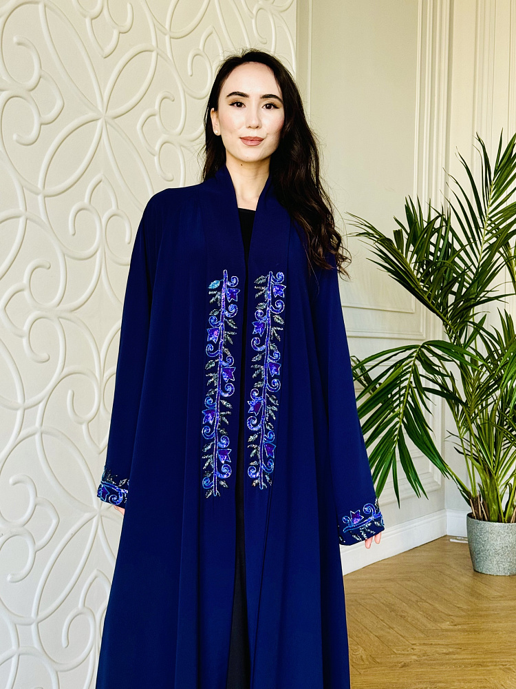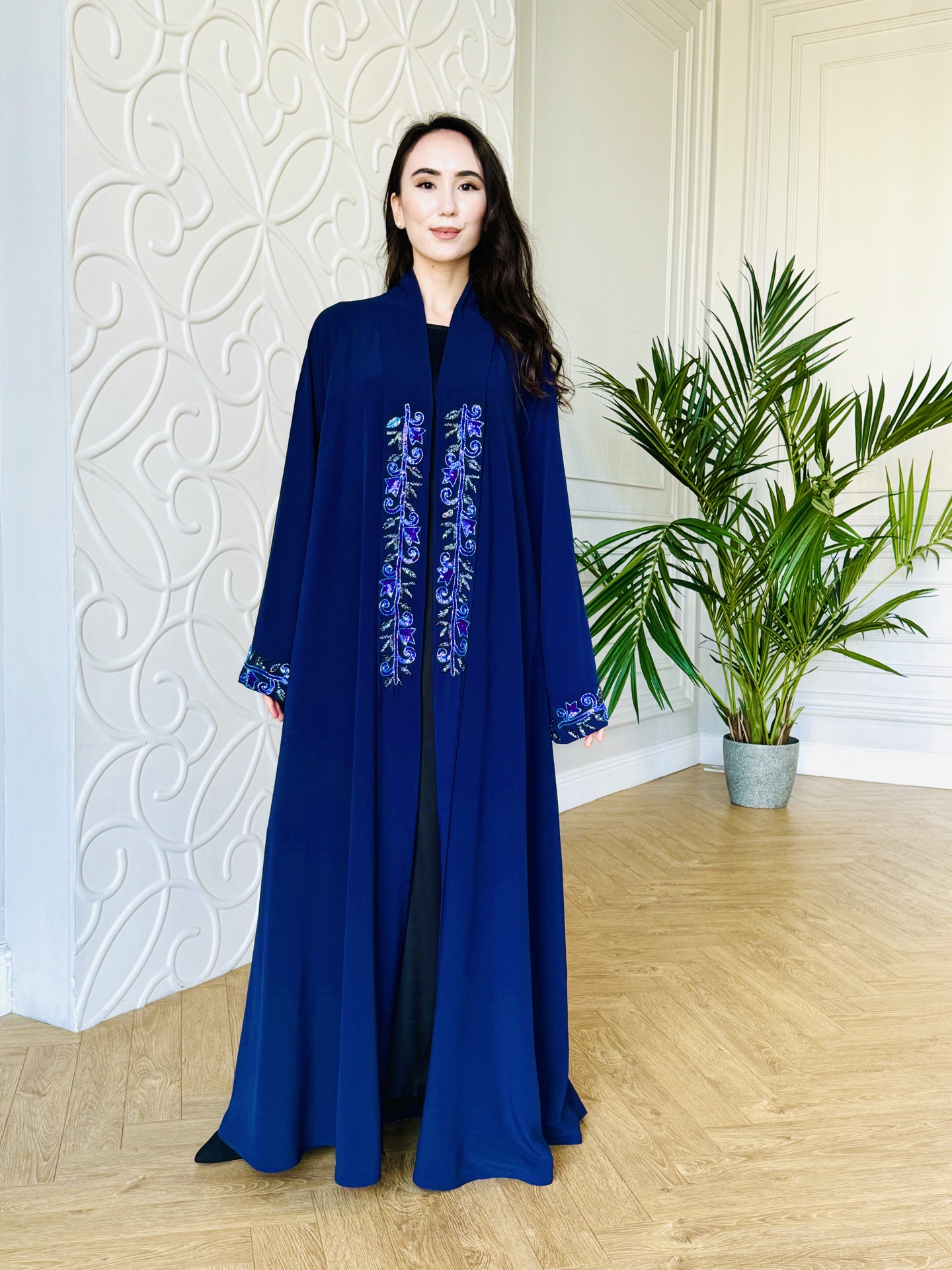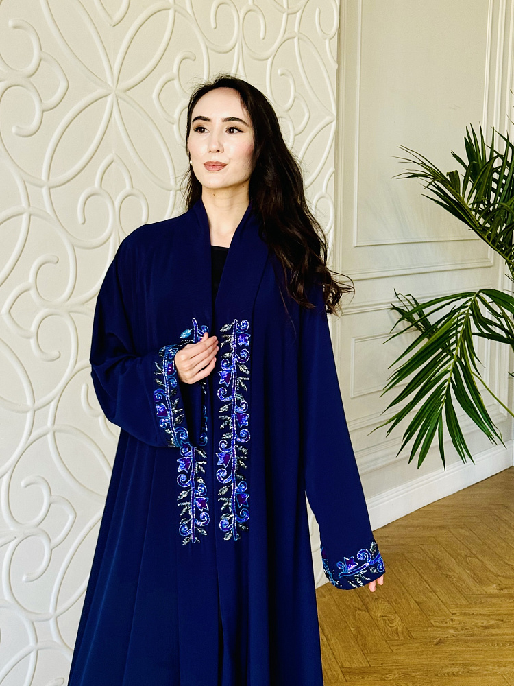 Абая люкс фиолетового цвета с вышивкой, ткань креп . Размер 46-52. Рост модели на фото-173см. Длина макси, производство Катар .