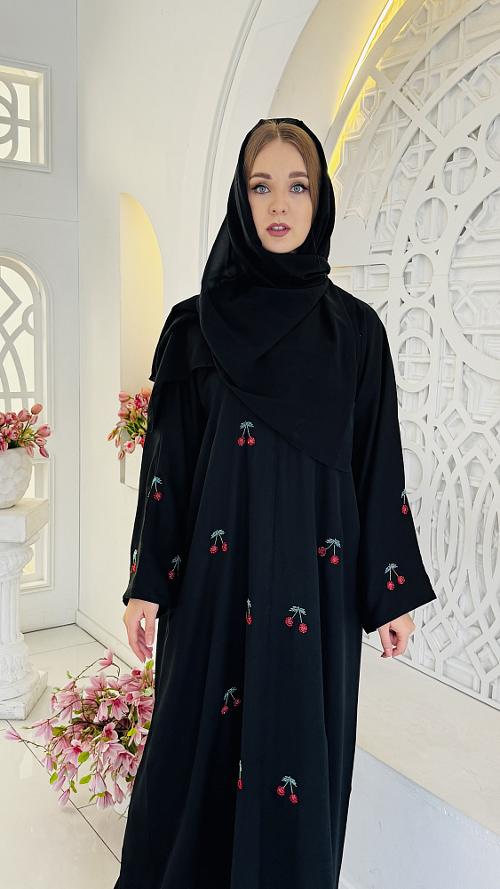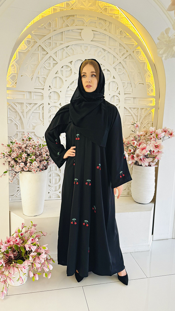 Эволюция абайи – это путешествие во времени. Зародившись как простая и практичная одежда для защиты от солнца и песка, она стала неотъемлемой частью культуры и традиций многих мусульманских стран. Сегодня абайя – это символ элегантности и культурной идентичности, вдохновляющий дизайнеров на создание современных интерпретаций, сочетающих классику и последние тенденции. Современная абайя поражает разнообразием стилей и дизайнов. От минималистичных моделей до авангардных творений, украшенных необычной вышивкой, каждая женщина может найти абайю, отражающую ее вкус и индивидуальность. Шелк, креп, шифон, бархат, парча, кружева, бисер, золотые нити – все это превращает абайю в произведение искусства. Эксклюзивная абая из дубайского шелка с орининальной вышивкой с декором ввиде вишенки. Размер единый от 46-52. Длина макси