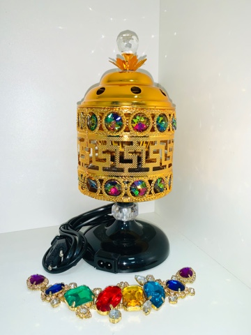 Новинка - бахурница 2 в 1, может быть электрической и не электрической , кабель съемный. Красиво декорировано камнями . С крышкой . Высотой около 30см