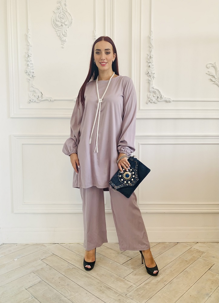Летний брючный костюм из штапель люкс светло-серого цвета. Костюм состоит из туники и просторных брюк. Размер 46-48-50.