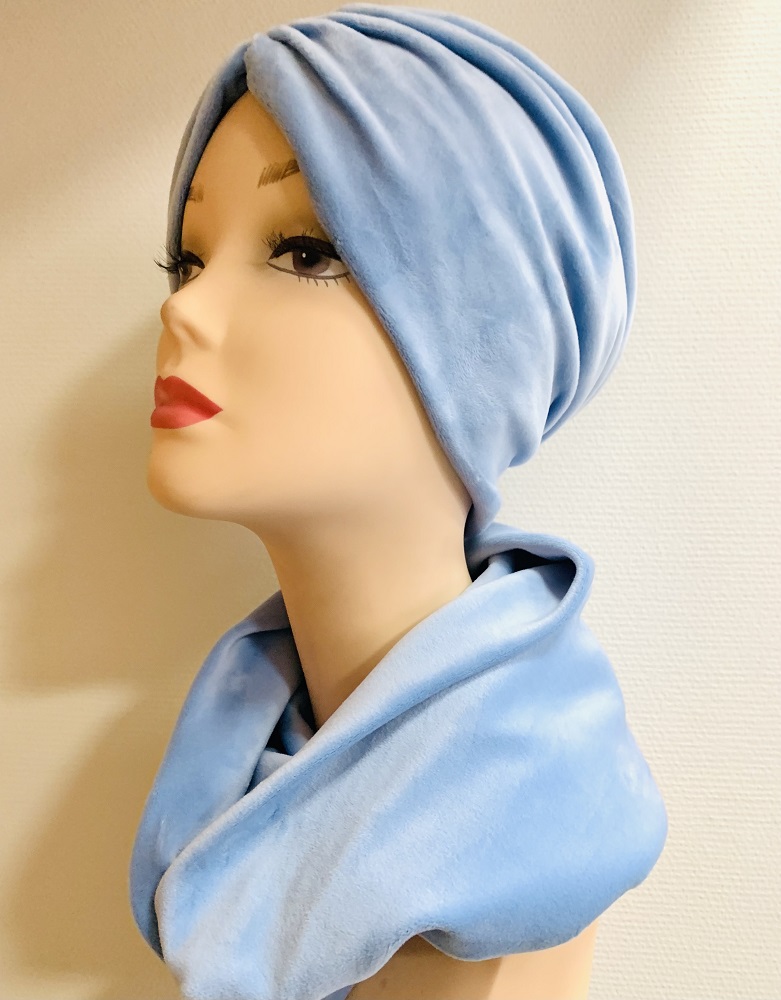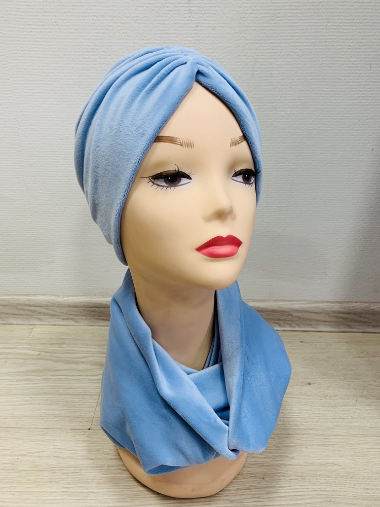 Красивая чалма с хомутом голубого цвета , ткань - королевский бархат