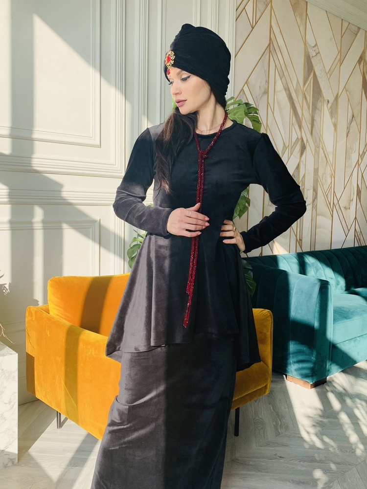 Красивый головной убор - чалма черного цвета из велюра на подкладе, декорирована брошкой. Производство Ателье Фатмафэшн