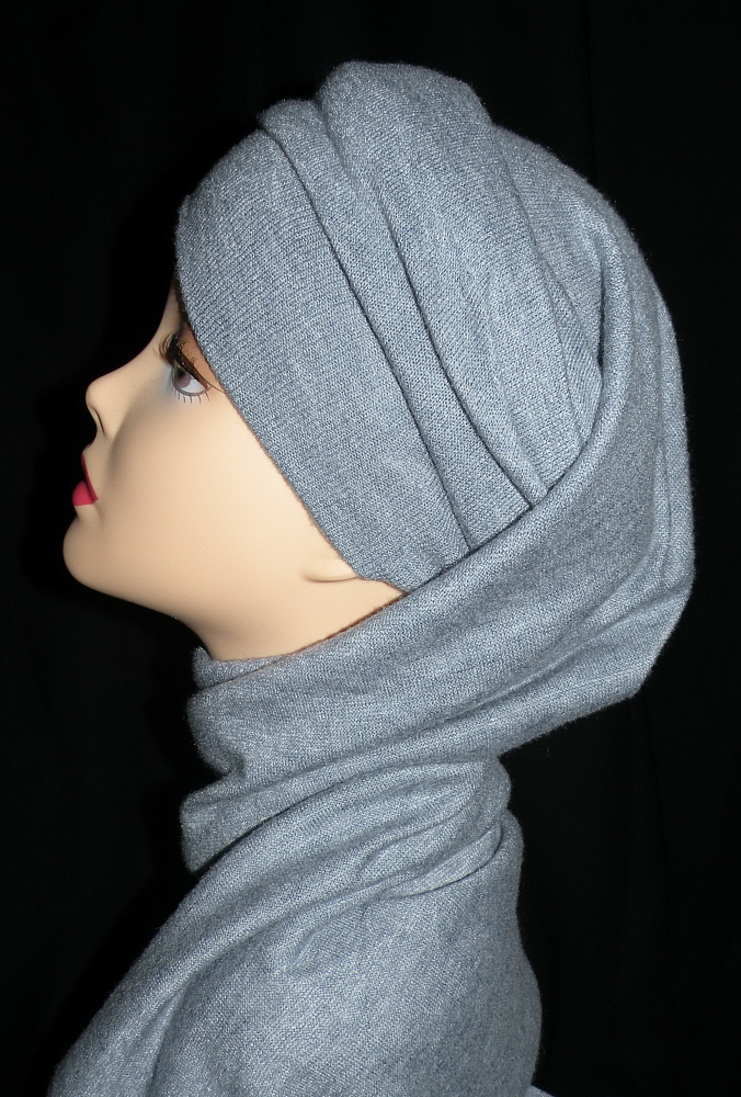 Чалма трасформер с вшитым палантином, который можно завязать вокруг головы одним концом, а другой вокруг шеи и получится изумительной красоты стильный головной убор . Ткань - теплый тонкий трикотаж , сезон осень-зима