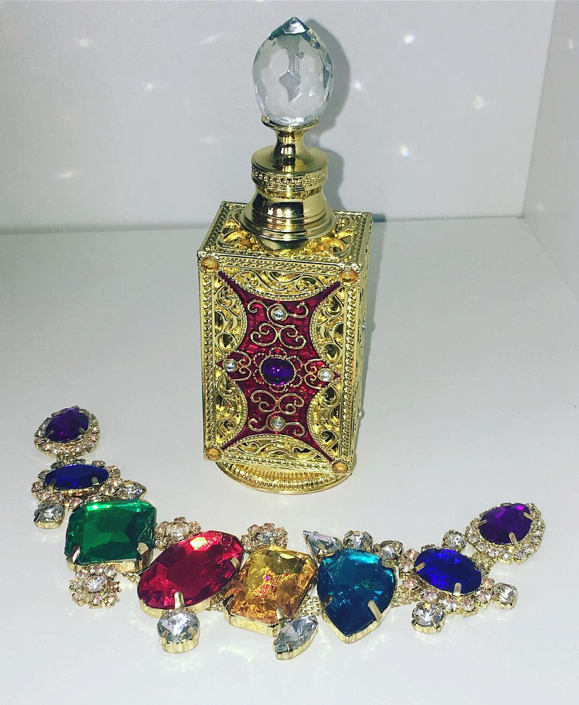 Флакон из металла в восточном дизайне с хрусталем на крышке. Объем 15мл