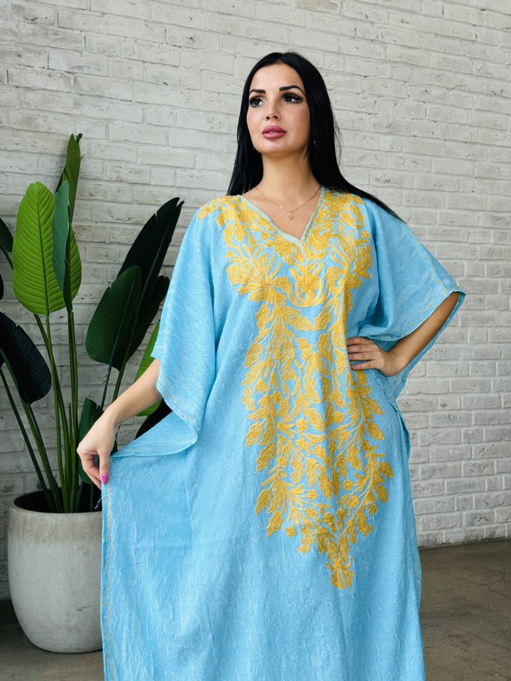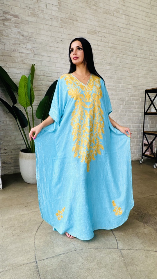 Красивая галабея, платье из жатого хлопка с вышивкой из кашемира. Размер единый от 44 до 54
