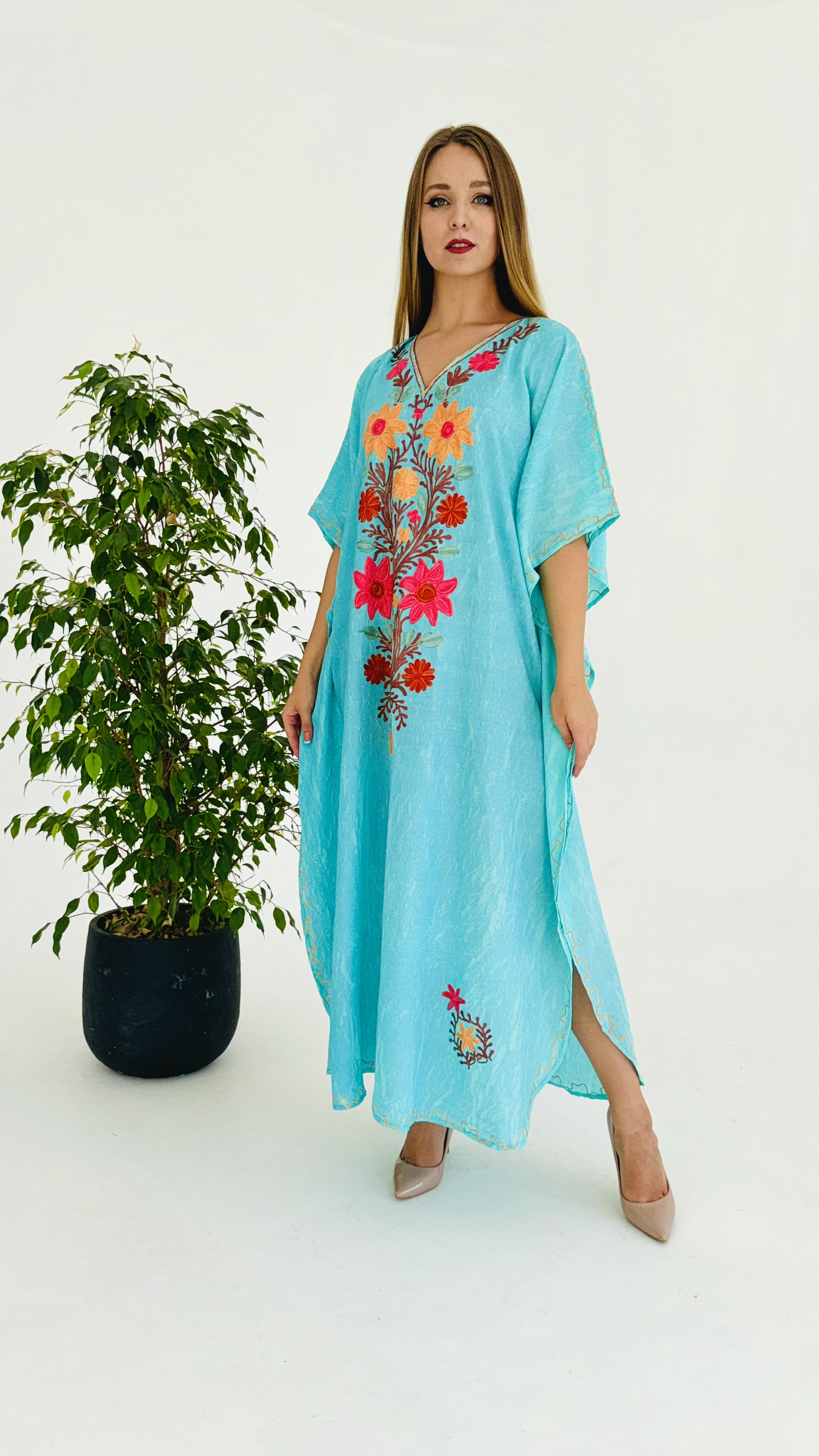 Красивая галабея, платье из жатого хлопка с вышивкой из кашемира. Размер единый от 44 до 54