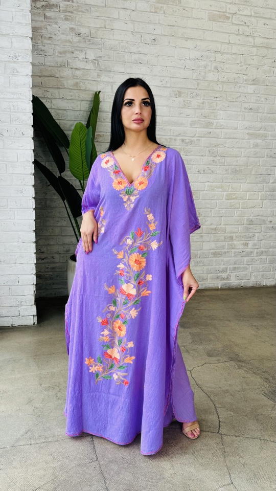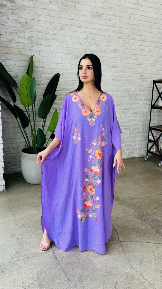 Красивая галабея, платье из жатого хлопка с вышивкой из кашемира. Размер единый от 44 до 54