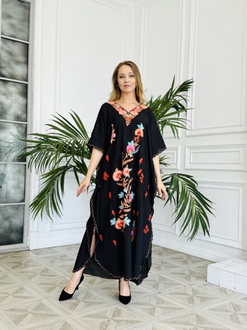 Красивая галабея платье из жатого хлопка с вышивкой из кашемира. Размер единый от 44 до 54