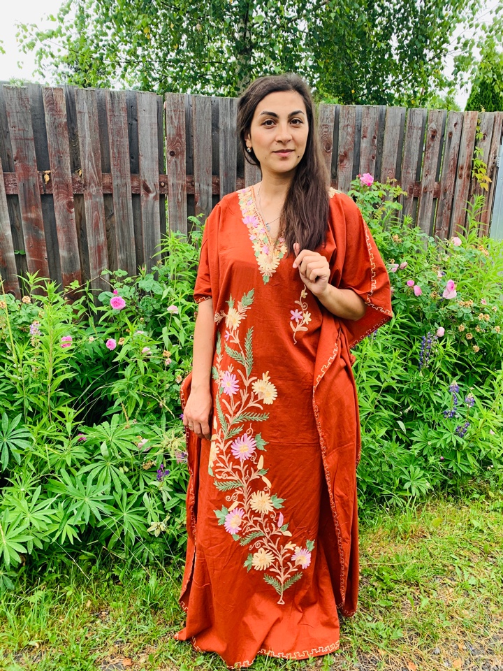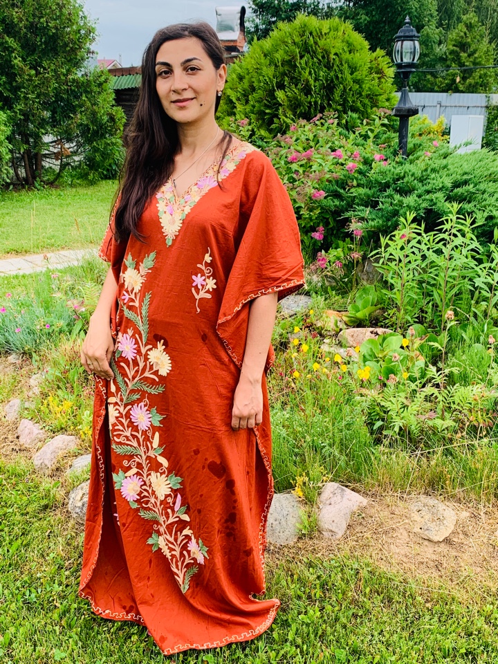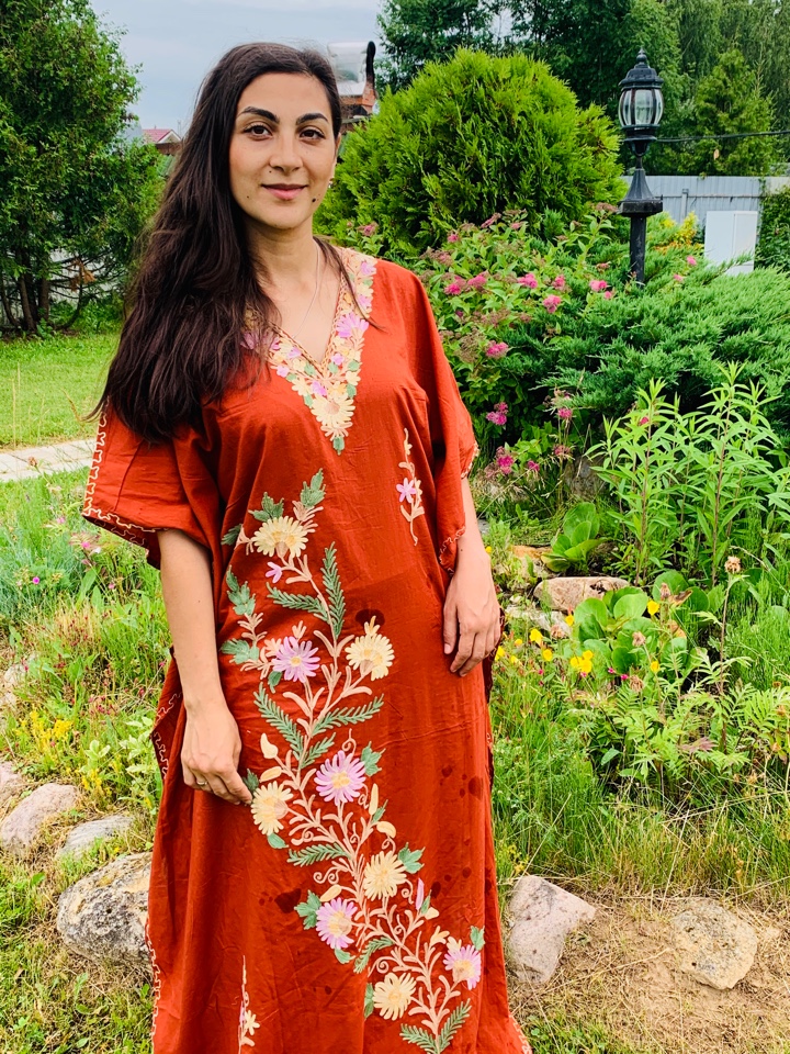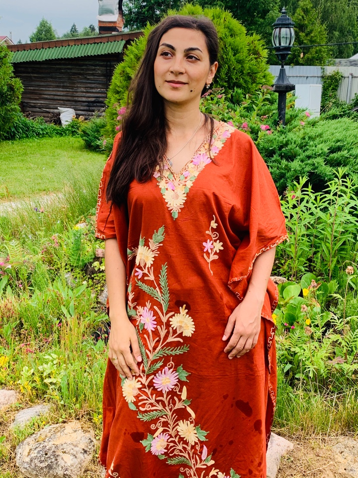 Галабейя свободного покроя с кашемировой вышивкой. Размеры свободный до 66. Производство ОАЭ.