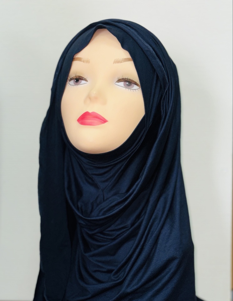 Готовый мусульманский головной убор из трикотажа, очень удобный. Размер единый, сделан ввиде капора и вшитого палантина . Цвет темно-синий.