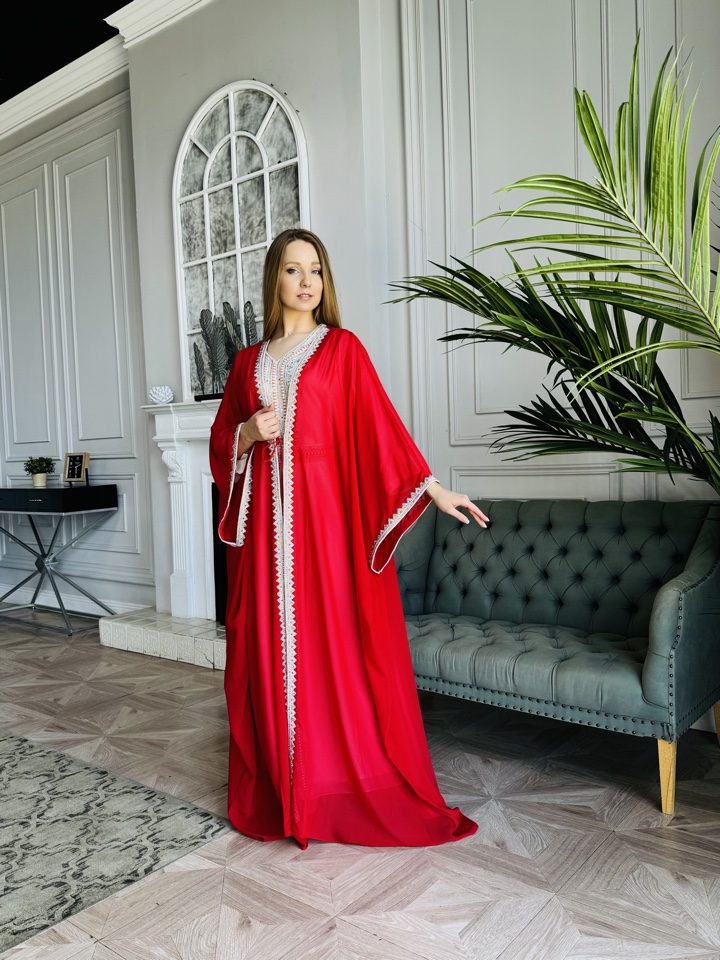 Эта модель идеально подходит для мусульманок, которые ценят традиции и стремятся выглядеть современно и стильно. Она сочетает в себе скромность и элегантность, позволяя женщине чувствовать себя уверенно и комфортно. Размеры от 44 до 52 позволяют каждой женщине подобрать идеальный вариант, а рост модели на фото (180 см) дает представление о том, как кафтан будет выглядеть на фигуре.