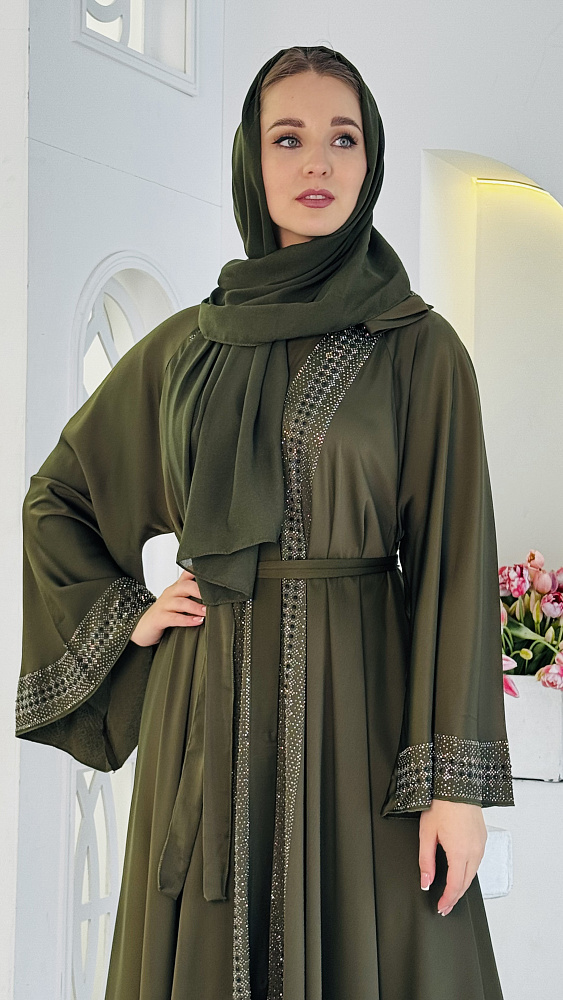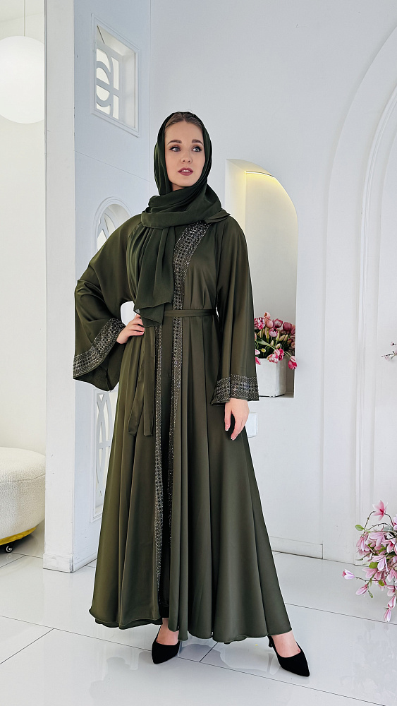 Окунитесь в мир утонченной элегантности с нашей новой коллекцией мусульманских абай! Представляем вам абайю фисташкового цвета – воплощение нежности и стиля. Эта абая идеально подойдет для создания утонченного и женственного образа. ✨ Особенности, которые покорят ваше сердце: Изысканный фисташковый оттенок: Этот благородный цвет подчеркнет вашу индивидуальность и придаст образу свежесть. Декор из мерцающих страз: Изысканный декор, расположенный на центральной части абайи и на манжетах, придаст вашему образу неповторимый шарм и блеск. Пояс в тон: Подчеркните свою талию с помощью пояса, который идеально дополняет абайю и создает элегантный силуэт. Легкий палантин: Завершите свой образ с помощью легкого палантина, который можно использовать как хиджаб или накидку. Безупречный крой: Свободный, струящийся крой обеспечивает максимальный комфорт и свободу движений. Премиальное качество: Мы используем только лучшие ткани и фурнитуру, чтобы вы могли наслаждаться красотой и качеством нашей одежды. Эта абая идеально подходит для: Особых случаев и торжеств Религиозных праздников Повседневной носки, когда хочется выглядеть элегантно и утонченно Не упустите возможность стать обладательницей этого восхитительного наряда! Закажите абайю фисташкового цвета прямо сейчас и почувствуйте себя королевой!
