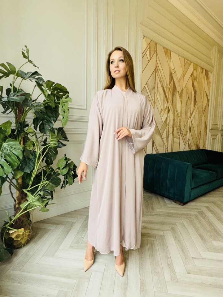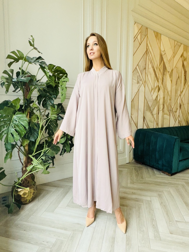 Нежно розовая абая Кара, изготовлена из материала дубайский шелк. Размерный ряд от 44-52.Абая свободного покроя. Палантин идет в комплектации.