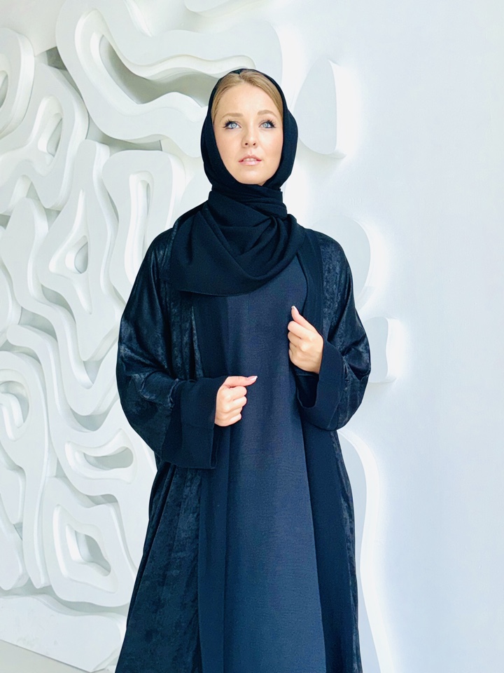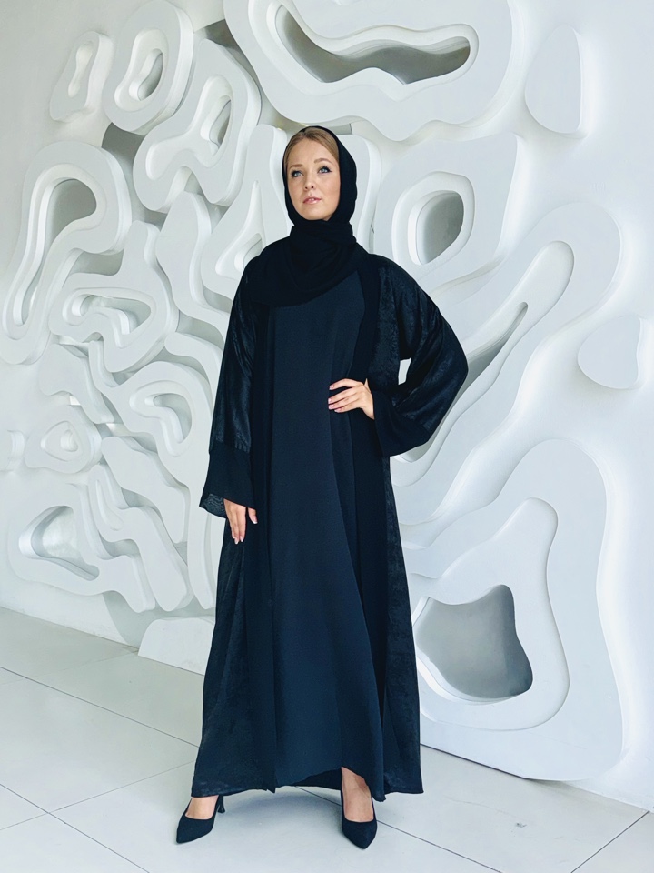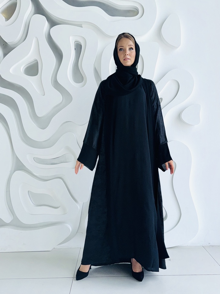 Мусульманский костюм включающий, базовое платье,абаю и палантин Ткань купра с напылением , шифон люкс и манго. Размерный ряд 44-52. Производство ОАЭ.