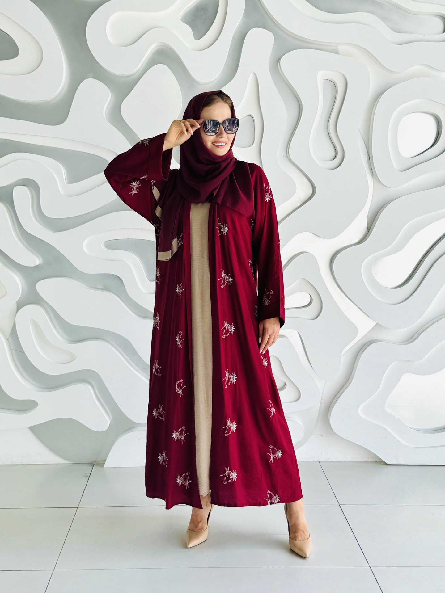 Мусульманский костюм тройка ,состоящий из базового платья, абаи и палантина. Размерный ряд от 44-52.Производство ОАЭ.