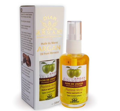 Натуральное косметическое масло арганы с зеленым яблоком GOLD OF MOROCCO, 50мл