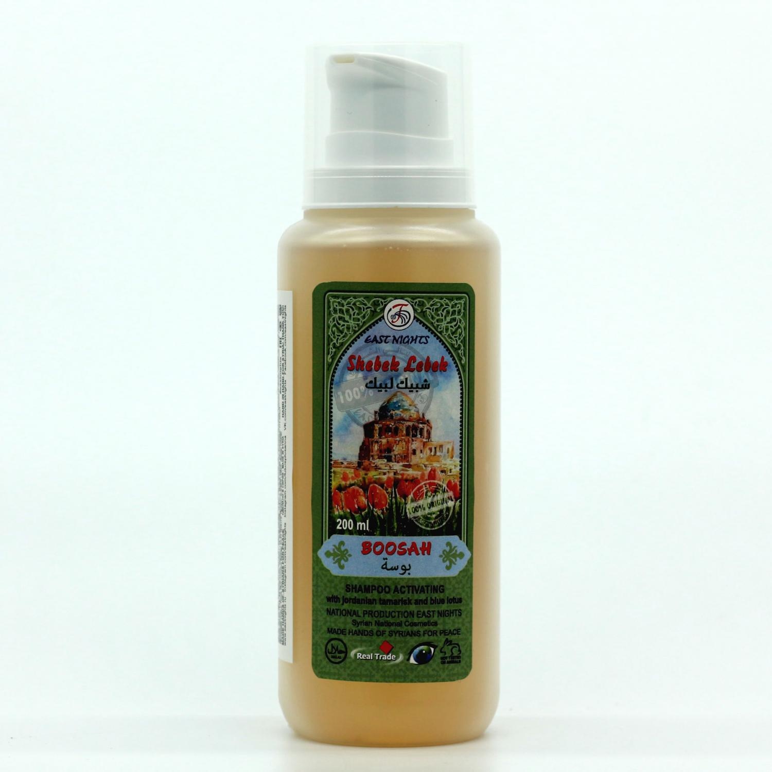 Органический шампунь BOOSAH «Поцелуй» создан технологами Национального сирийского производства восточной косметики East Nights для питания, увлажнения и активизации роста волос. Компоненты шампуня оказывают стимулирующее действие на замершие луковицы волос, ускоряют кислородный обмен в клетках кожи головы, глубоко питают и насыщают волосы витаминами.