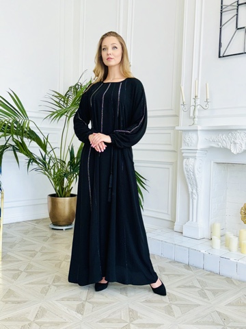 Абая с декором из страз . Прилагается палантин и пояс . Размер единый 44-52. Длина макси. Производство ОАЭ