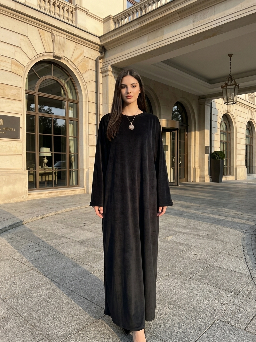 Шикарное платье из ткани бархат вельвет. Нежное и элегантное , с красивой нежной текстурой. Модель с цельнокроеным рукавом, оверсайз . Длина макси . Размер от 46 до 50.