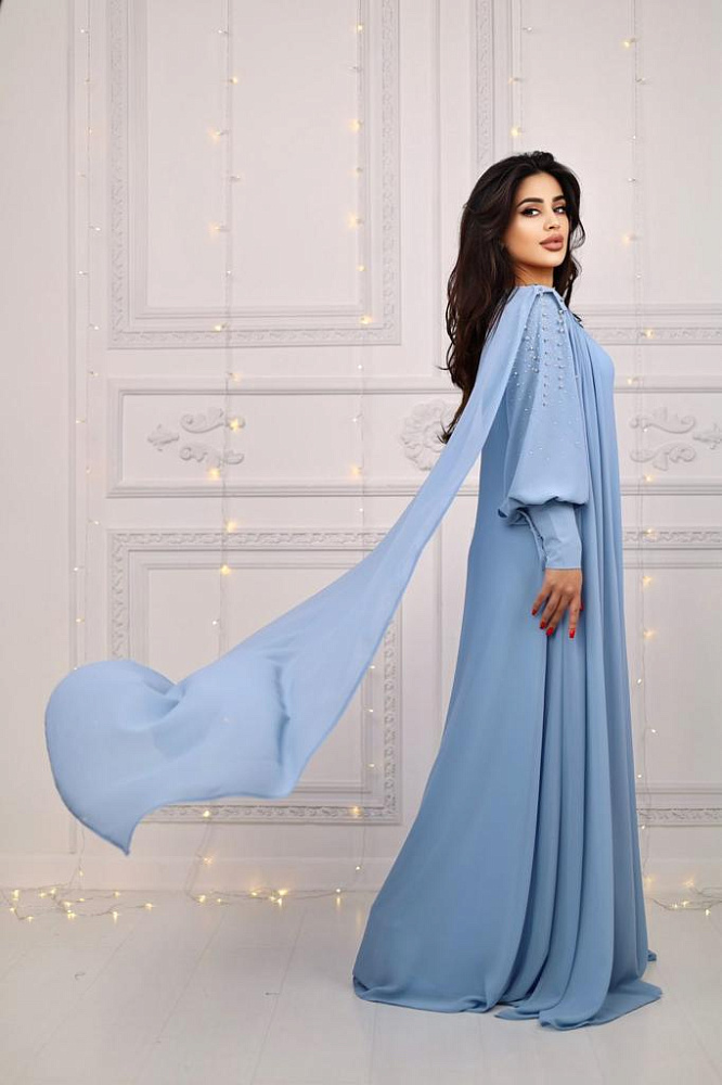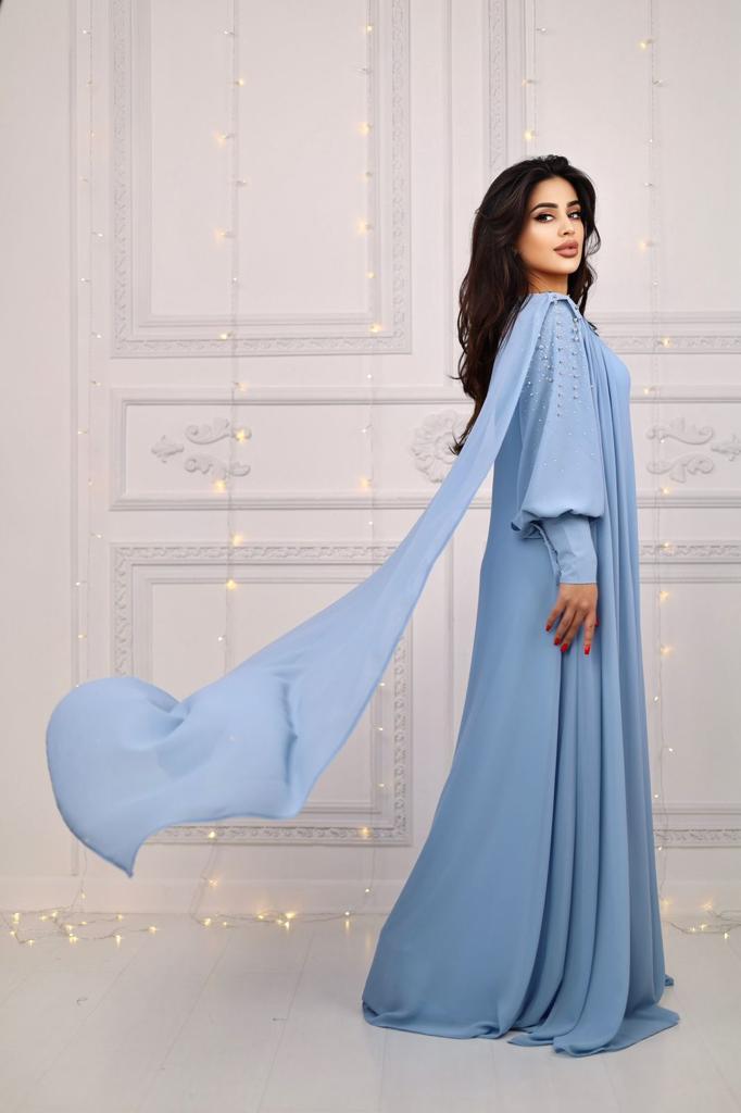 Летнее легкое платье Флоренция не оставит вас без внимания. Платье из креп шифона, декор и страз , кейп поверх платья . Размер 44-46-48