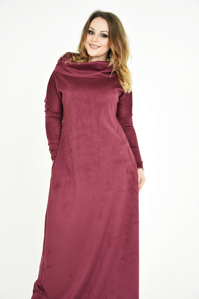 Потрясающе красивое платье из замшы, цвета фуксии. Стильного дизайна с широким воротом. Размеры 44-46-48-50.
