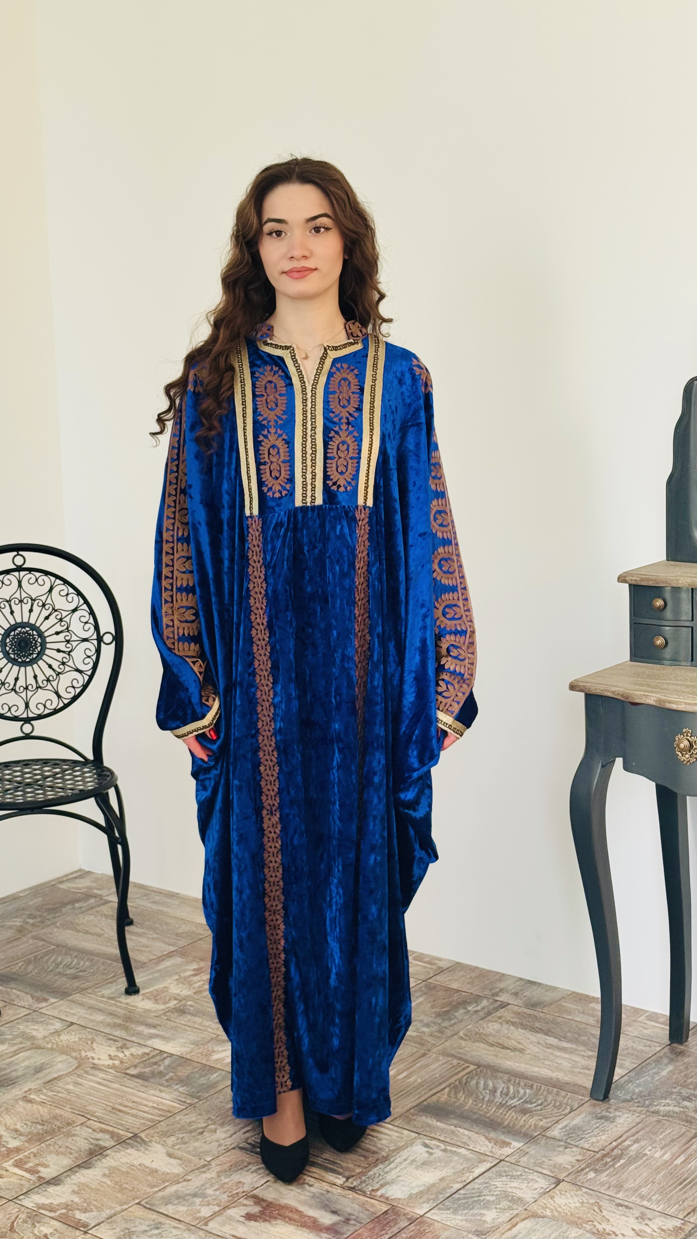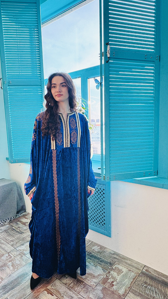 Красивое мусульманское платье на каждый день или для праздничных мероприятий. Модель оверсайз подойдет на любую фигура. Рост модели 170см. Длина платья макси. Ткань королевский велюр.