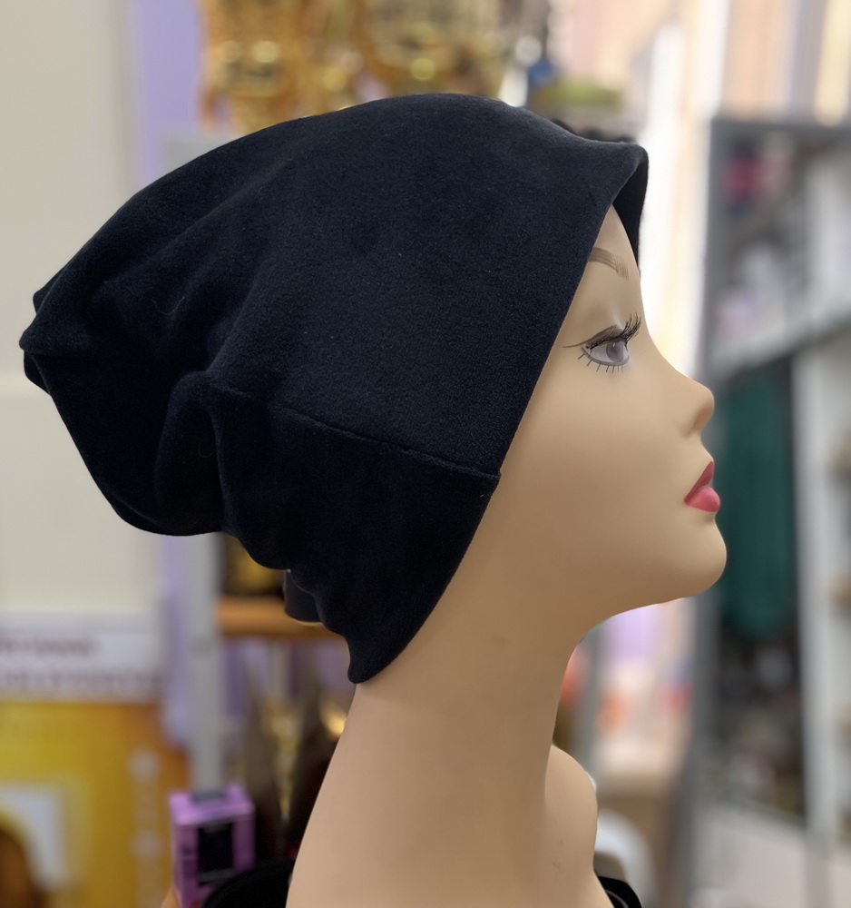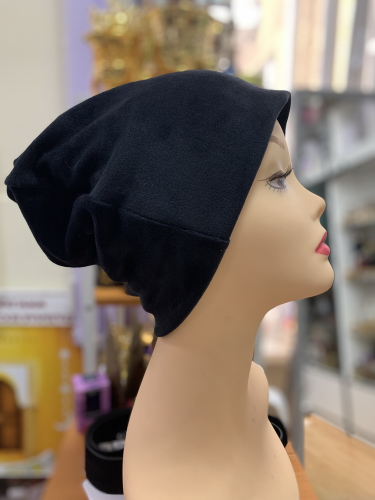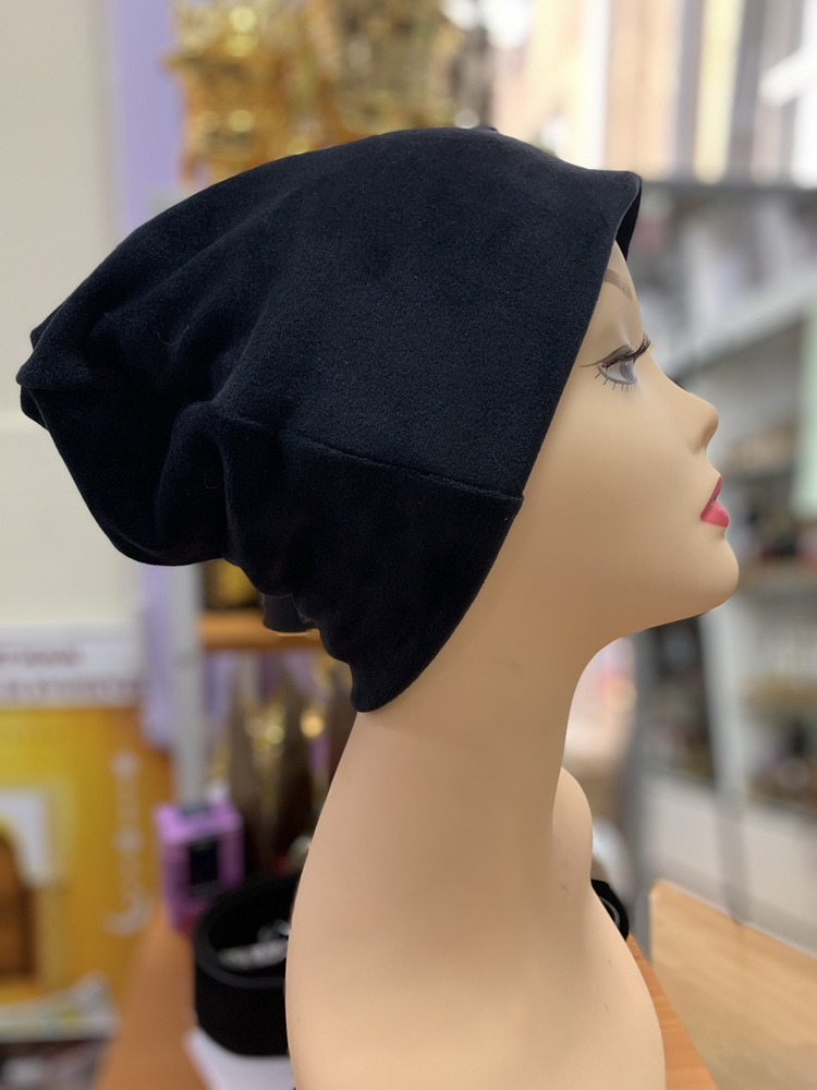 Стильная шапка бони из велюра черного цвета. Безразмерная