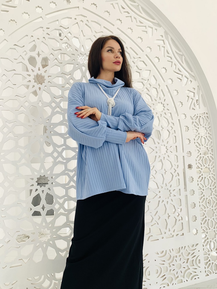 Красивая туника из трикотажа нежно-голубая лапша . Оверсайз.
