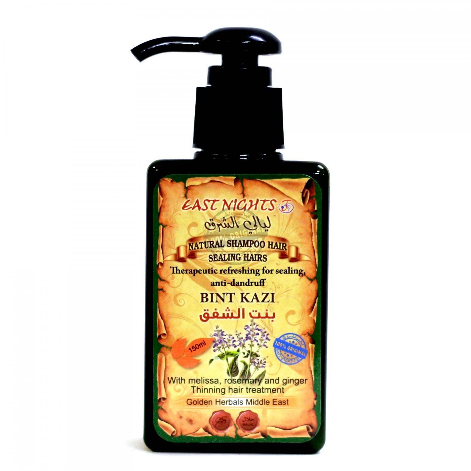 Освежающий шампунь BINT KAZI «Решающий» Национального сирийского производства восточной косметики East Nights не только бережно очищает кожу головы, лечит перхоть, снимает симптомы аллергических реакций и зуд, но и придает волосам плотность, наполняя их жизненной силой и восстанавливая от повреждений по всей длине.