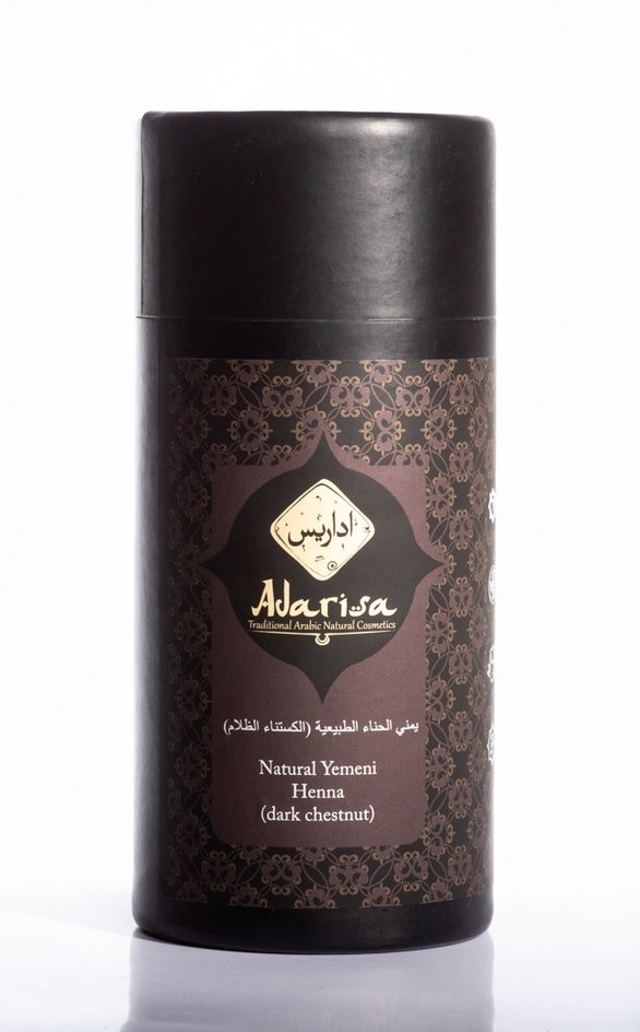 Йеменская хна для волос «Adarisa» (темно-каштановая)Натуральная хна йеменская "Adarisa" - растительный краситель для волос, дающая им глубокий и живой темно-коричневый натуральный оттенок. Безопасное и безвредное растительное, природное средство токсичных веществ и взывающих аллергию химических консервантов не содержит. Только 2 компонента включены в исходный состав: тонкий порошок хны, собранной в провинции Мансуриан, а также молотые листья басмы. Басма (индигофера) дает краске насыщенный, сильный и глубокий цвет. Идеальный микс рыже-медного и черного цветов создает благородный, роскошный чистый темно-каштановый цвет.