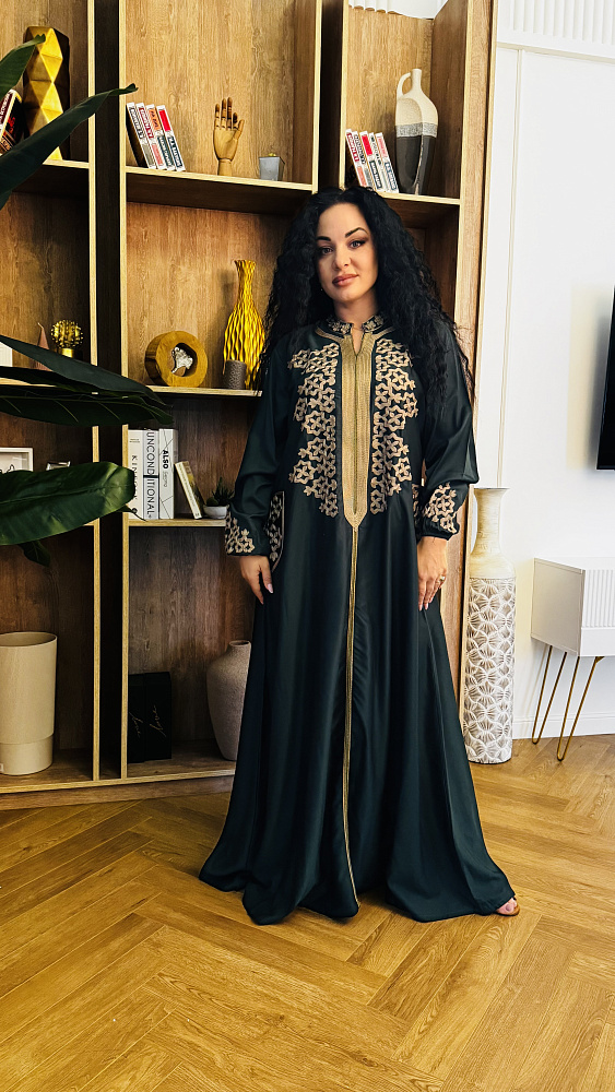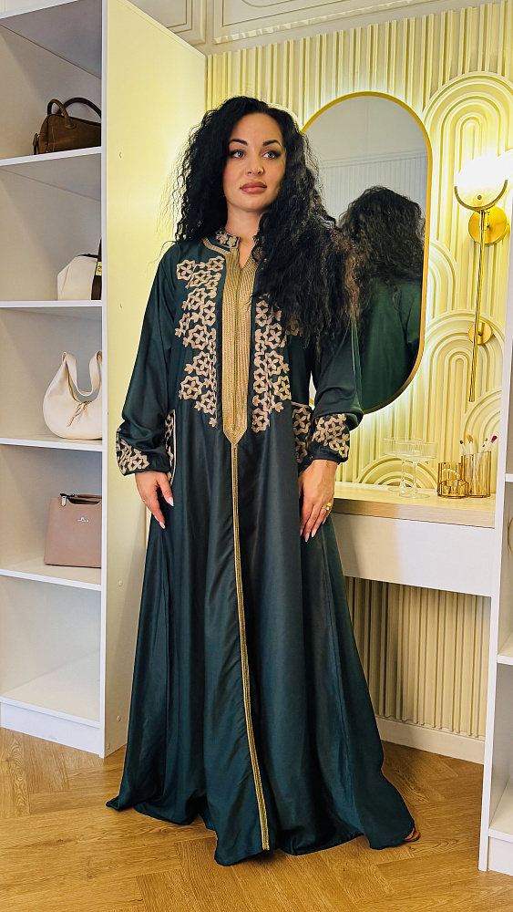 Красивое женское платье изумрудного цвета . Красивый ориентальный декор платья дополняет и украшает модель. Купить данное платье можно в нашем магазине через сайт или приехать к нам в шоурум.