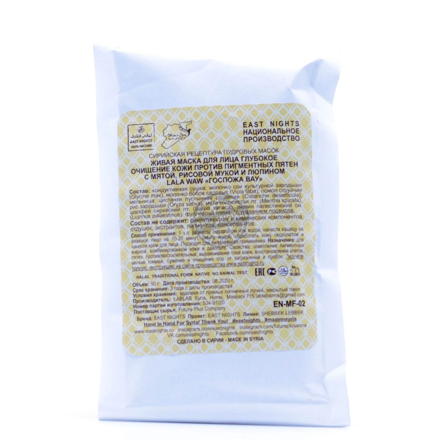 Состав: кондуктивная сушка: молочко сои культурной зародыши (Glycine max), молочко бобов садовых (Vicia faba), помол струйная мельница: цистанхе пустынная соцветия (Cistanche deserticola), рис зародыши (Oryza sativa), мята колосистая листья (Mentha spicata), шалфей сирийский листья (Salvia syriaca), люпин палестинский семена (Lupinus palaestinus), фуллерова глина.*с указанием подвидов растений